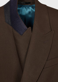 Made from 100% super gabardine wool from Hardy Minnis, this blazer features a double-breasted silhouette. Using a traditional cloth and colours inspired by an archive collection, this blazer is finished with a soft colour-flash lining for added comfort. * Modern classic shoulder * 'Piano key' internal facing construction * Contrast orange envelope flap pockets * Contrast lilac piping * Double vent * Working four button cuffs * Flap pockets with colour-flash lining * 100% Wool * Dry clean only * Made in Italy The Fit Tailored-Fit Modern classic shoulder with slightly more suppression at waist than classic tailoring. Product Code: M1R-2328-N02211-69A