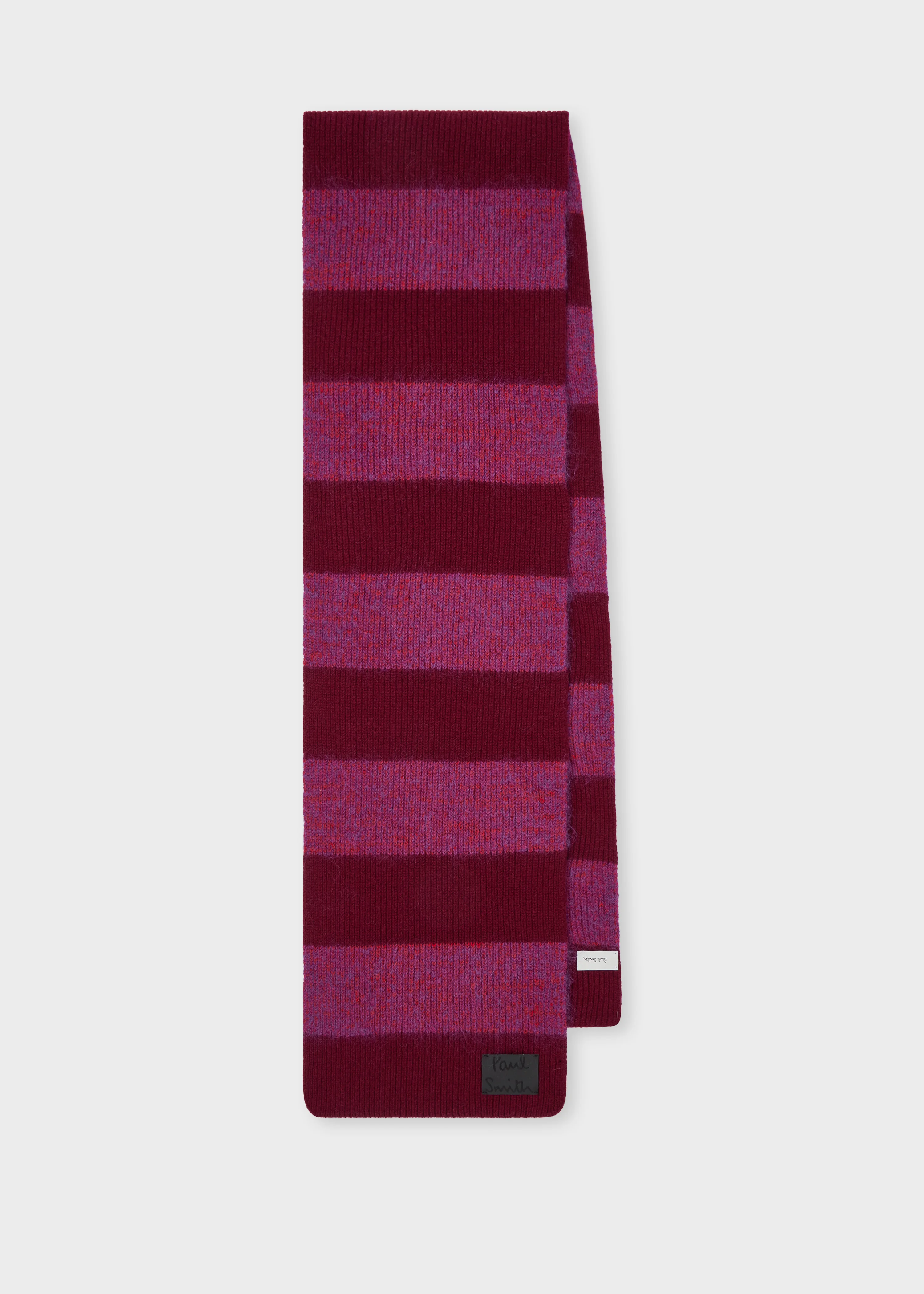 Burgundy and Pink Chunky Stripe Lambswool-Mohair Blend Scarf
