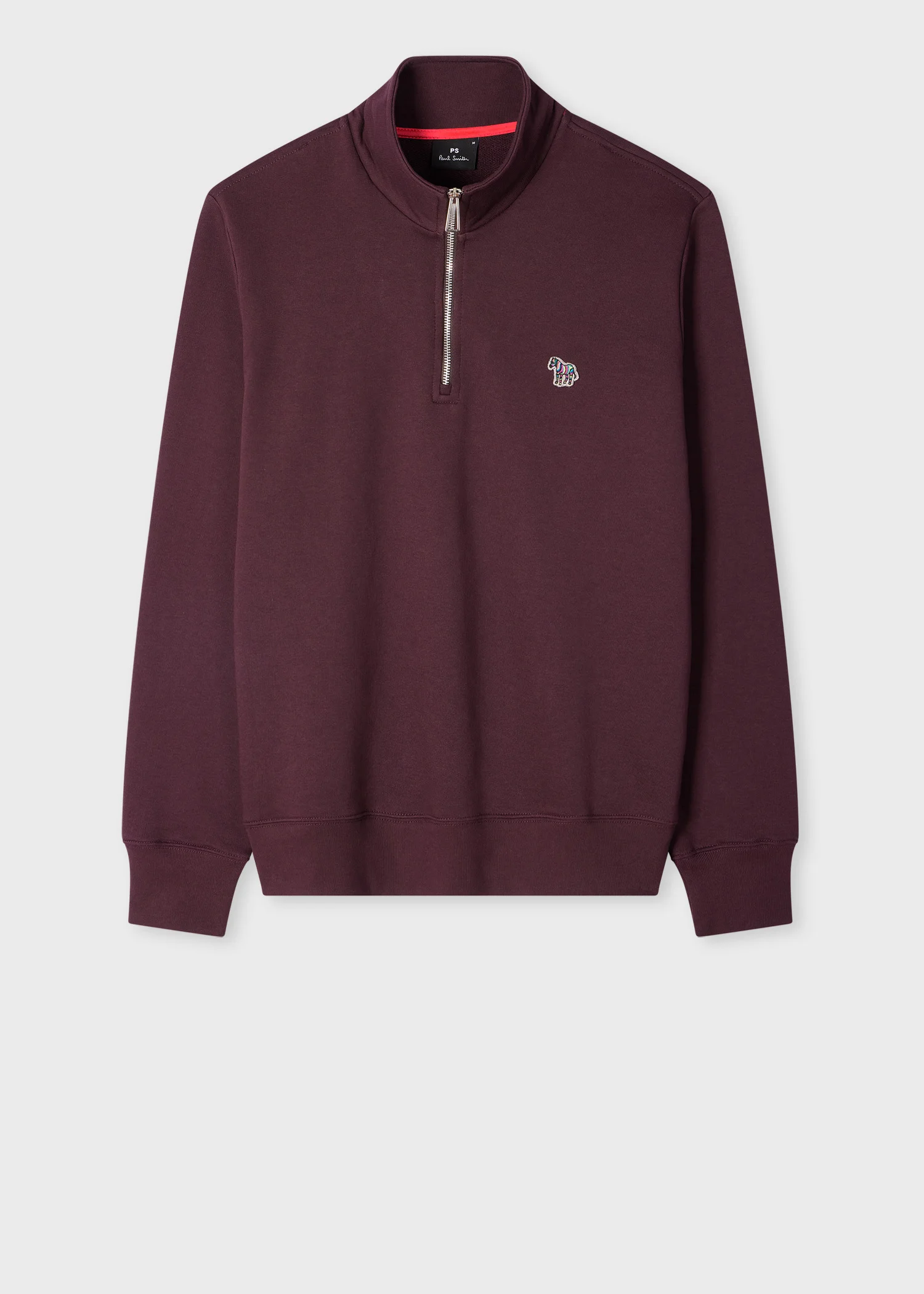 Cut from organic loopback cotton, this burgundy sweatshirt features a funnel neck with a half zip fastening. Finished with our classic Zebra logo stitched on the chest. The Fit - Regular-Fit is relaxed through the body Product Code: M2R-168TZ-T21116-29A