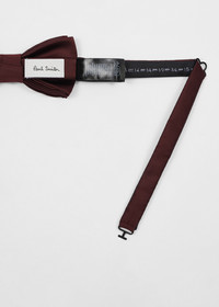 Crafted in Italy, this burgundy bow tie is pre-tied for convenience and finished with a hook-and-eye fastening. Made from a satin composition, it is the ideal finishing piece for any formal occasion. 100% Polyester Made in Italy Product Code: M1A-WBOW-P00101-28