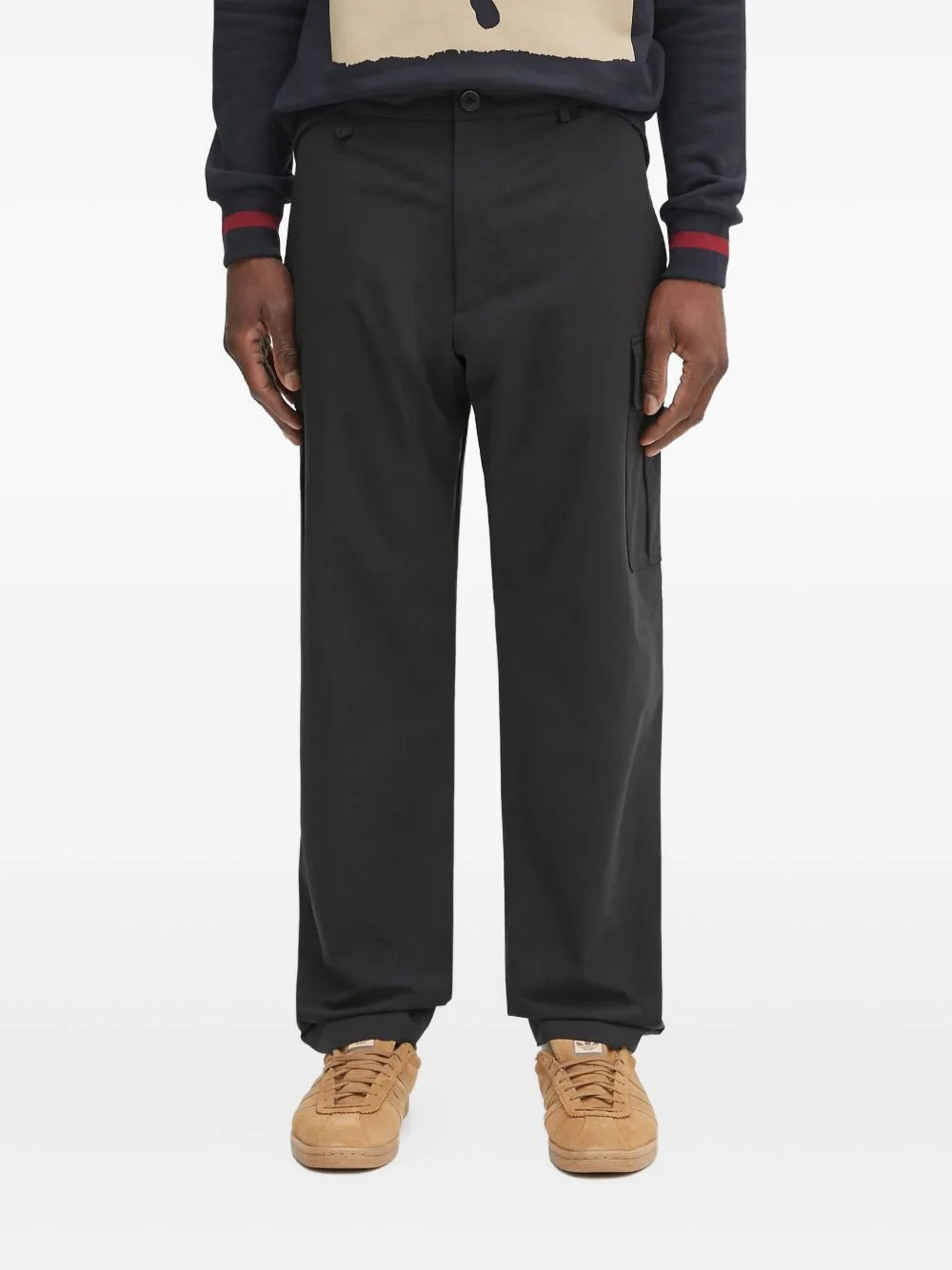 button-fastening straight-leg trousers Highlights - Black - Cargo pocket - Button fastening - Straight leg - Flat front Imported Composition Recycled Polyester 50%, Polyester 50% Lining: Viscose 100% Washing instructions Read Manufacturer Guidelines