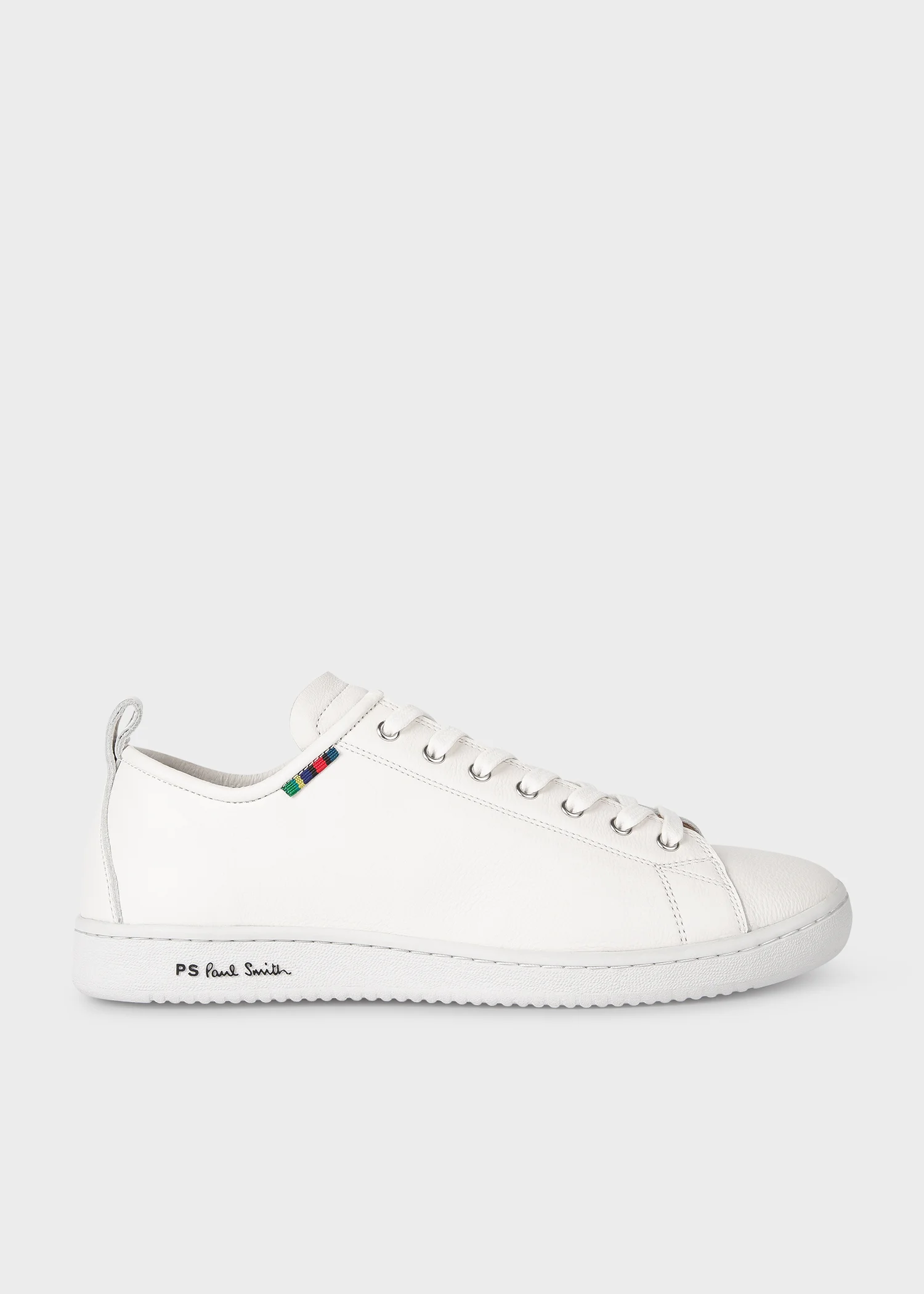Crafted from smooth fine-grain calf leather, these sleek white ‘Miyata’ sneakers come complete with lightweight, textured rubber cupsoles with raised black heel logos. Spare laces included 100% Leather Uppers, 100% Rubber Soles Product Code: M2S-MIY01-ASET-01