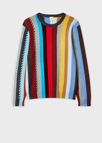 Made from a soft wool-cashmere blend, this sweater features a 'Signature Stripe' pattern throughout, with an overlaying cable knit. A statement piece, this sweater pairs well with neutral bottoms for an elevated, casual look. The Fit Regular-fit is relaxed through the body. Product Code: M1R-546Z-T02828-92