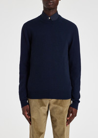 Cut from soft-to-touch cashmere, this navy crew neck sweater takes a timeless silhouette. Finished with our 'Artist Stripe' inside the collar and on the sleeve cuff edge, this sweater provides a casual alternative to a formal shirt when worn under tailoring. Made in England 100% Cashmere Cold Hand Wash Only Product Code: M1R-278Y-L02162-49