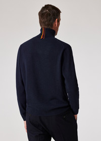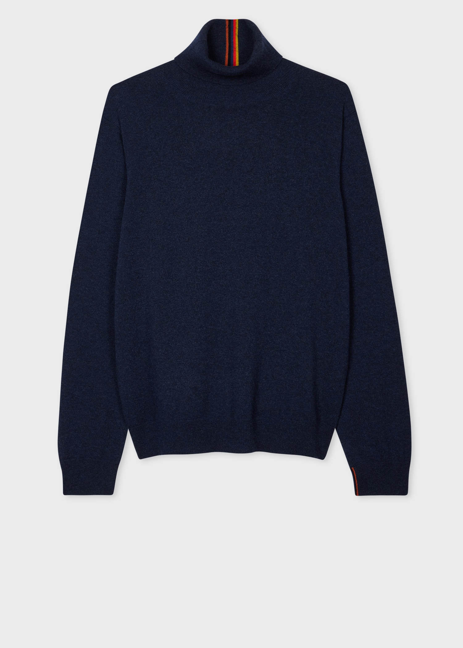 Made in Italy from a rich cashmere this navy roll neck sweater features ribbed cuffs and waistband. The roll neckline is complete with an internal 'Artist Stripe' tab for instant brand recognition. 100% Cashmere Hand Wash or Dry Clean only Made in Italy The Fit Regular-Fit is relaxed through the body. Product Code: M1R-280Y-N02497-47