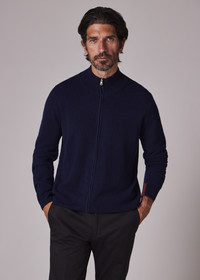 Navy Cashmere Full-Zip Cardigan