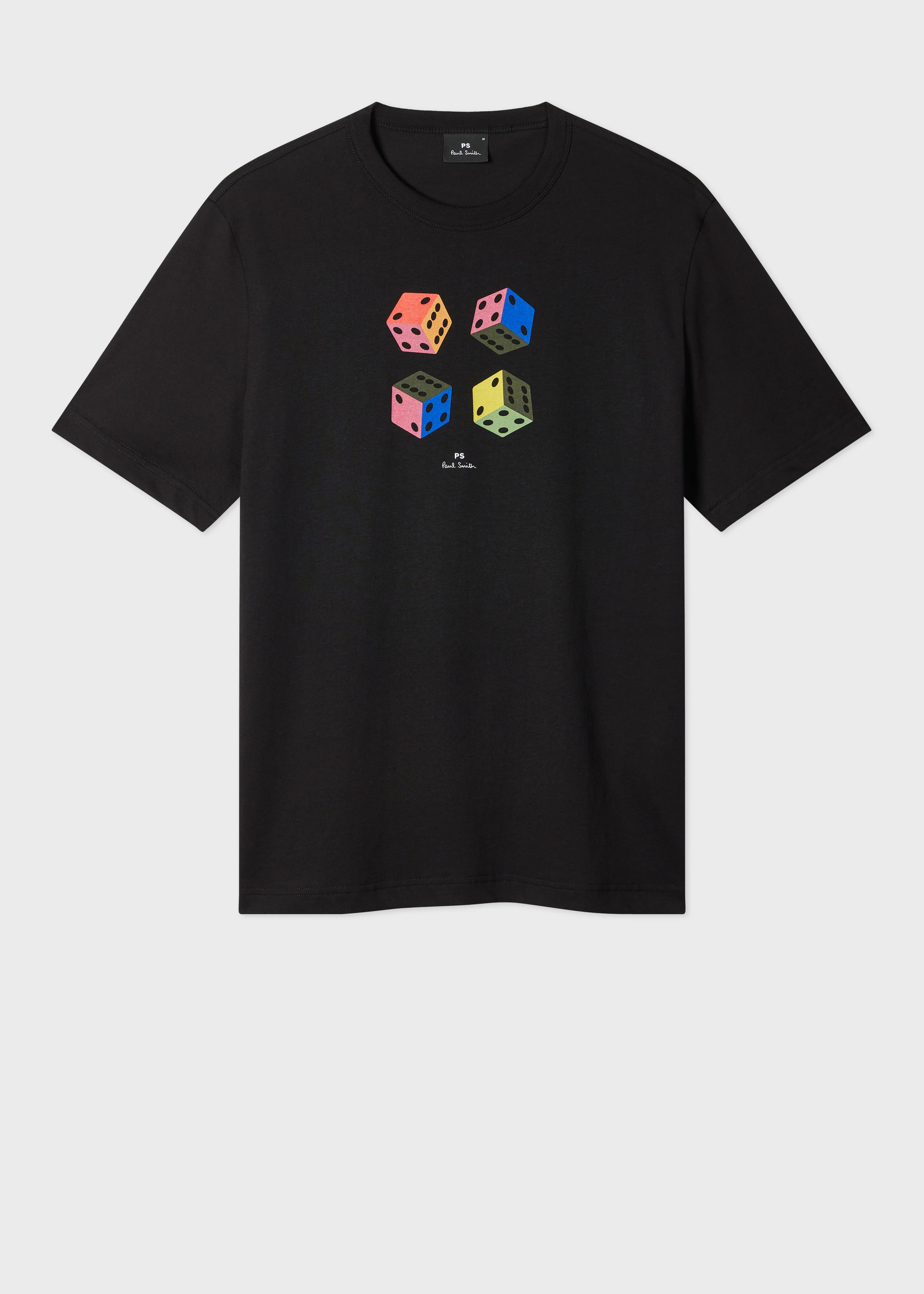 Made from a rich organic cotton, this black crew neck T-shirt features a colourful 'Dice' print on the front. Cut for a casual fit, this T-shirt features a stitched-on ribbed collar. The Fit - Casual-Fit, is relaxed through chest and wider towards the hem. Product Code: M2R-220X-VP5588-79