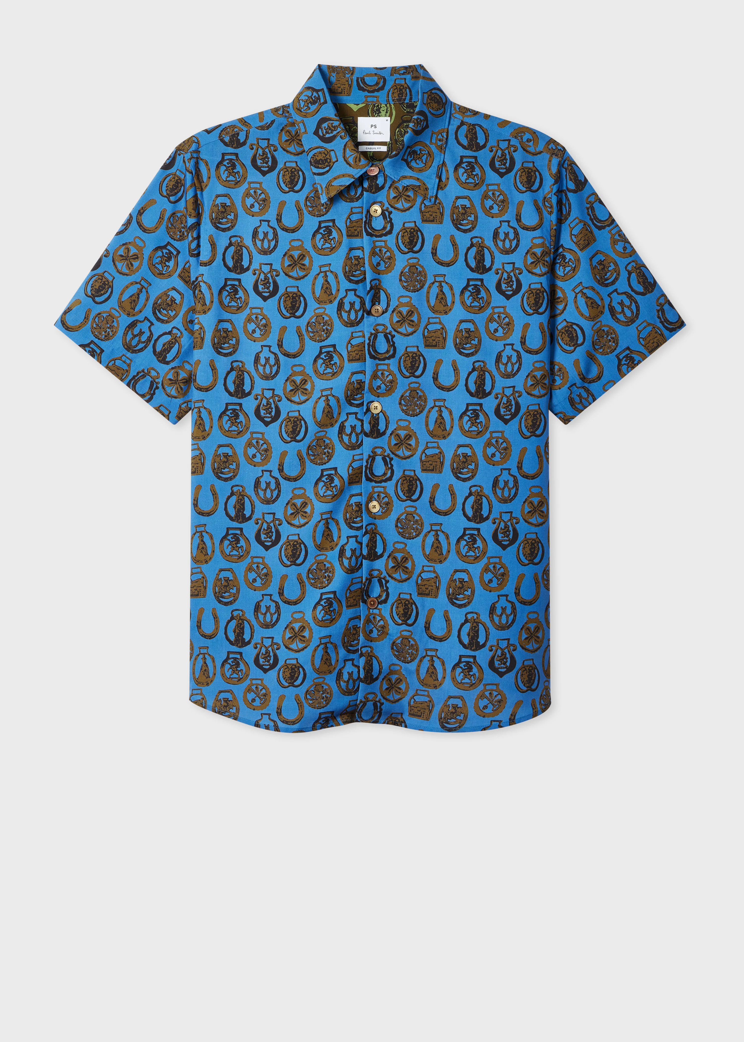 Casual-Fit Cobalt Blue 'Lucky Charm' Print Shirt