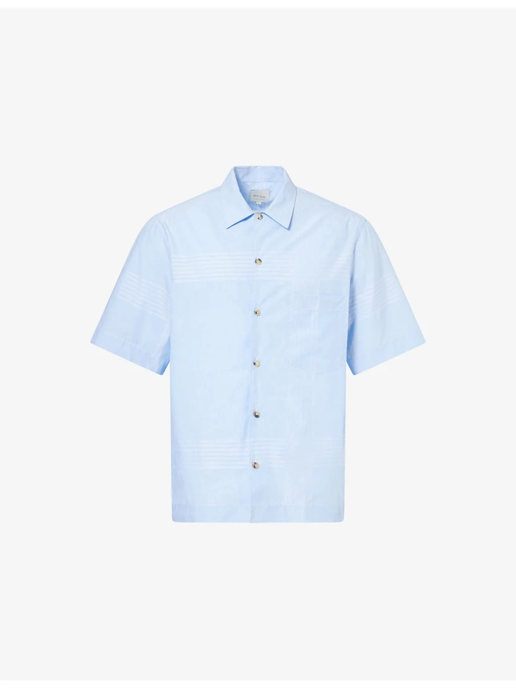 PRODUCT DETAILS - Paul Smith cotton-poplin shirt - 100% cotton - Exposed button fastening at front - Spread collar - Closed cuffs - Casual fit, collar, short sleeves, patch pocket at front, straight yoke at back, all-over striped print - Machine wash at 30°C - Made in Italy - Size medium: length 28in / 72cm, chest 44in / 112cm - Model is 6ft 2in/1.88m and wears a size medium - Lightweight, slight stretch Ref: R04536655