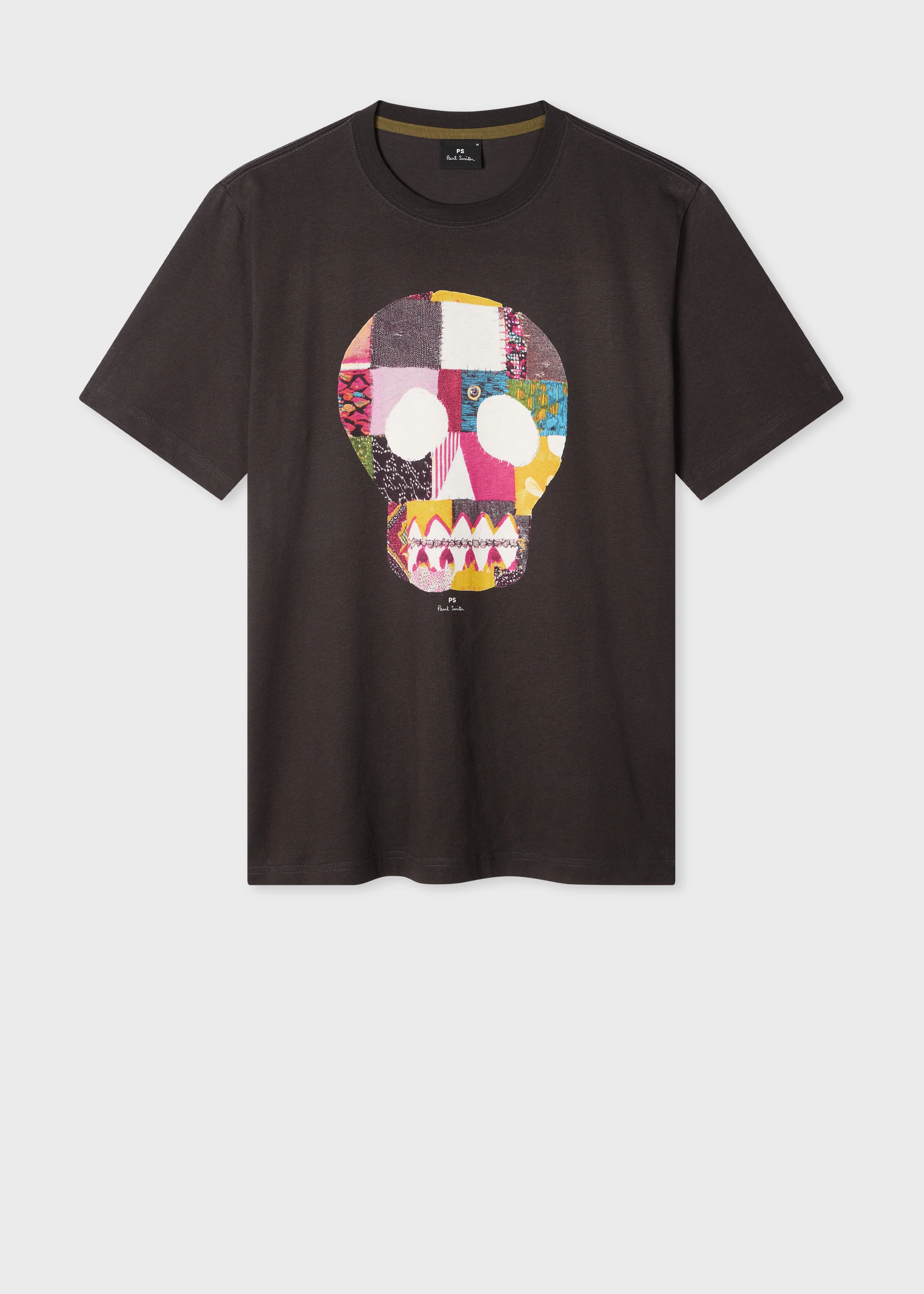 Charcoal Grey 'Fabric Skull' Print T-Shirt
