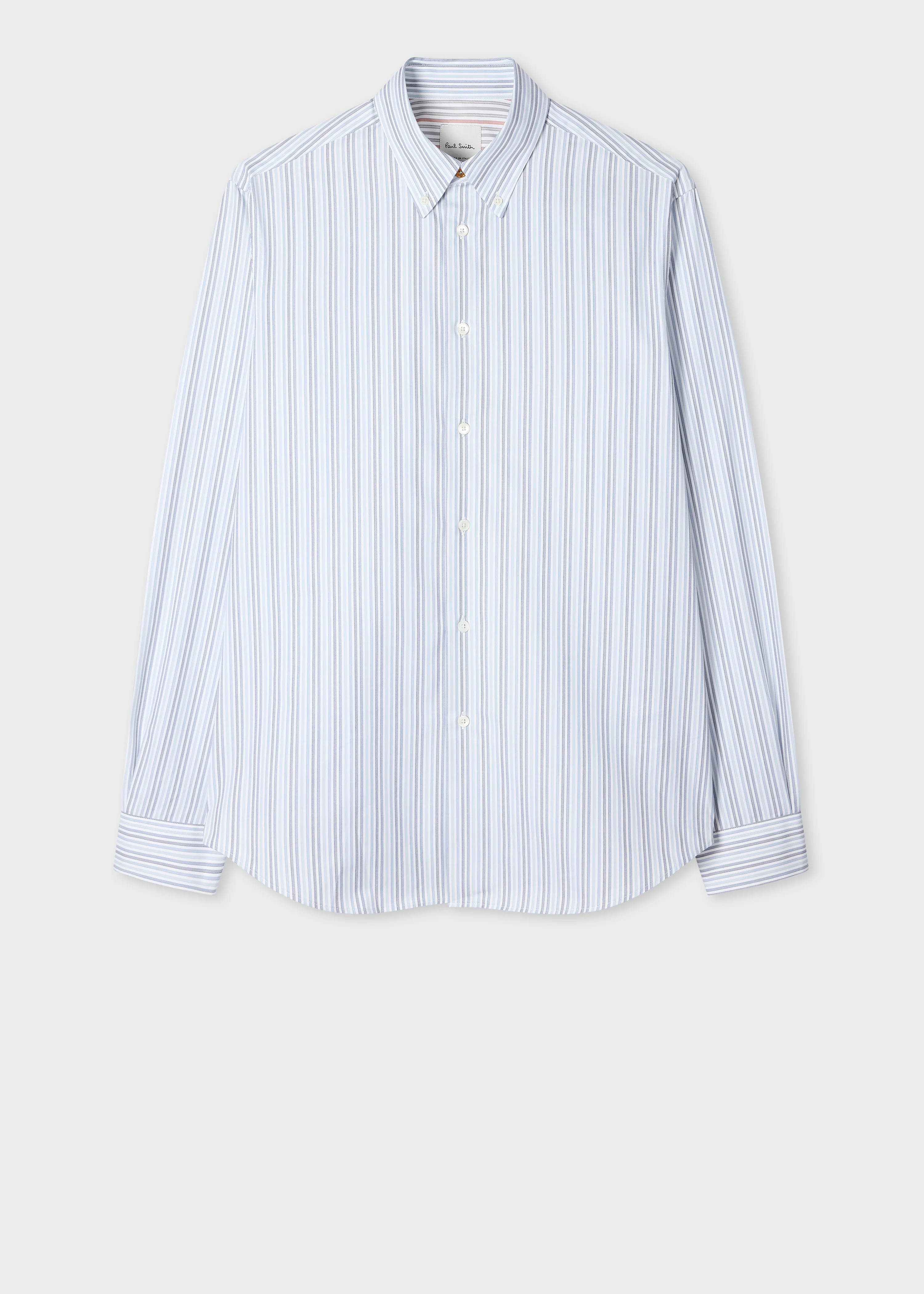 Made in Italy from premium 100% cotton, this long-sleeve shirt features a tonal blue stripe pattern throughout. Cut for classic, casual fit, this shirt has a button-down collar and contrast gold top button. Complete with contrast yoke and cuff lining - for an added twist. The Fit - Classic-Fit - Relaxed through the chest - Wider towards the hem - Curved hem Product Code: M1R-546Y-V02911-40