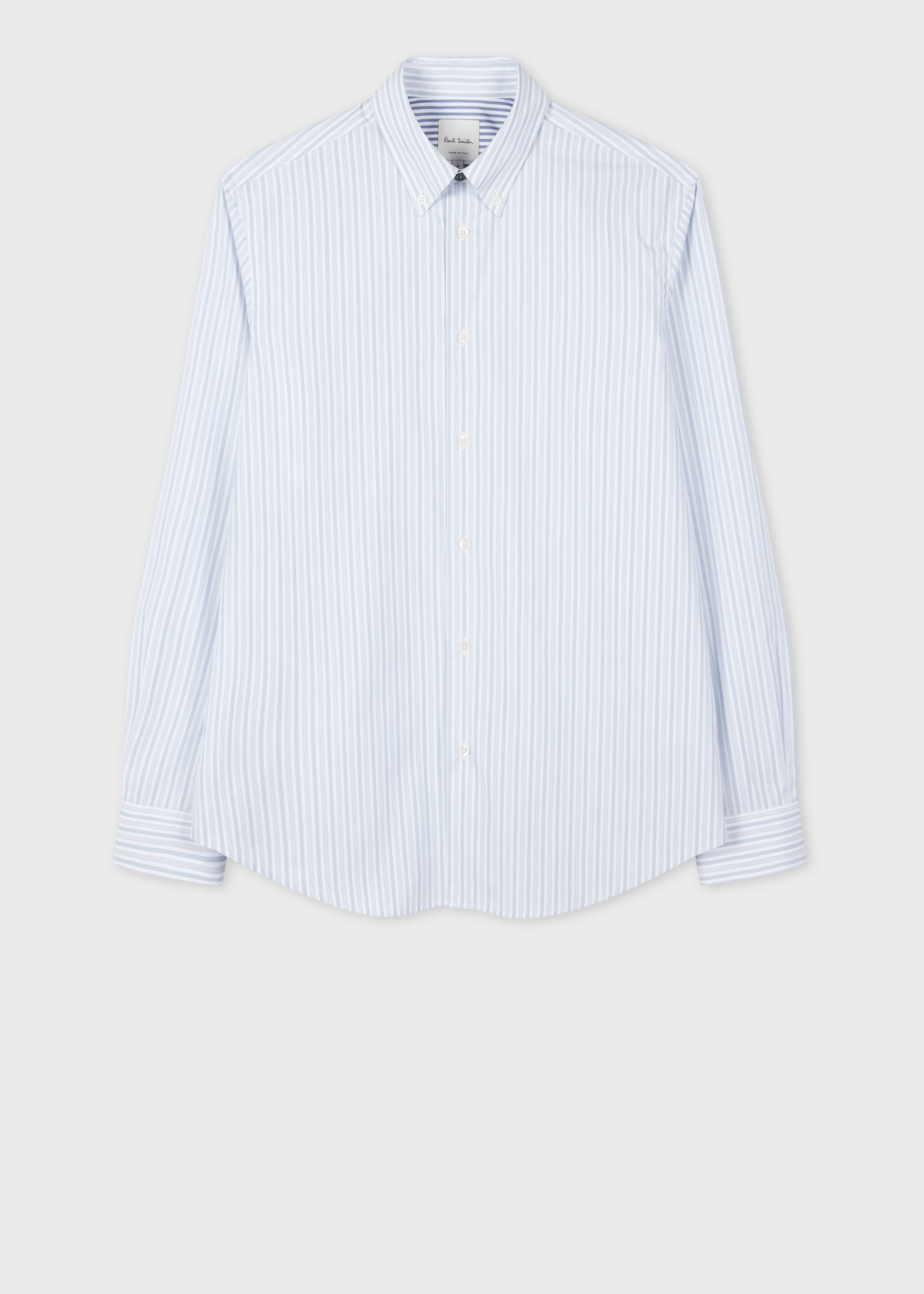 Classic-Fit Light Blue Mixed-Stripe Shirt
