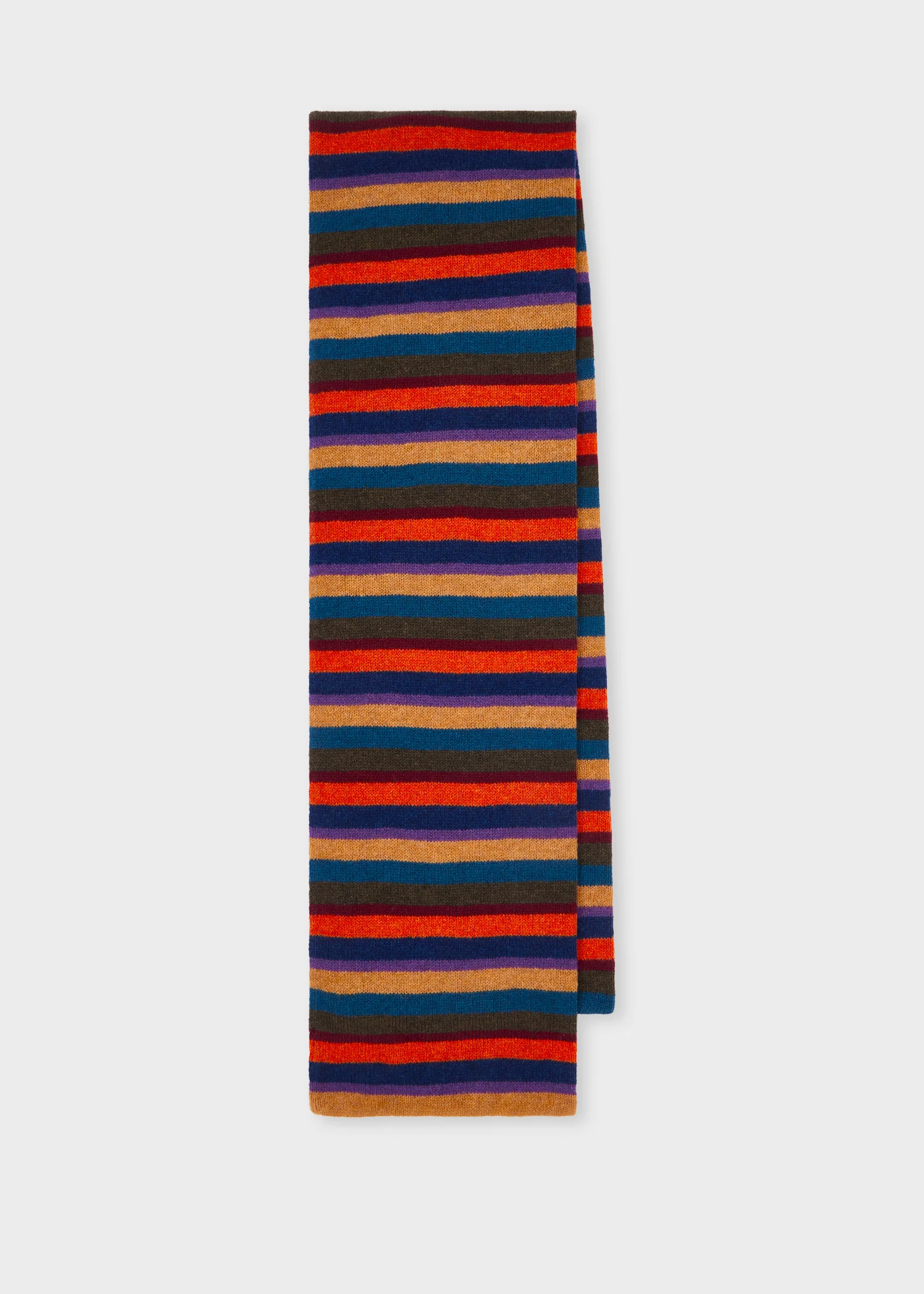 Made in Great Britain from 100% soft lambswool, this scarf features a bright, colour-block stripe pattern throughout. Perfect for transitional weather, this scarf pairs well with tonal colours for an elevated everyday look. Product Code: M1A-151MK-T722-28