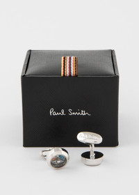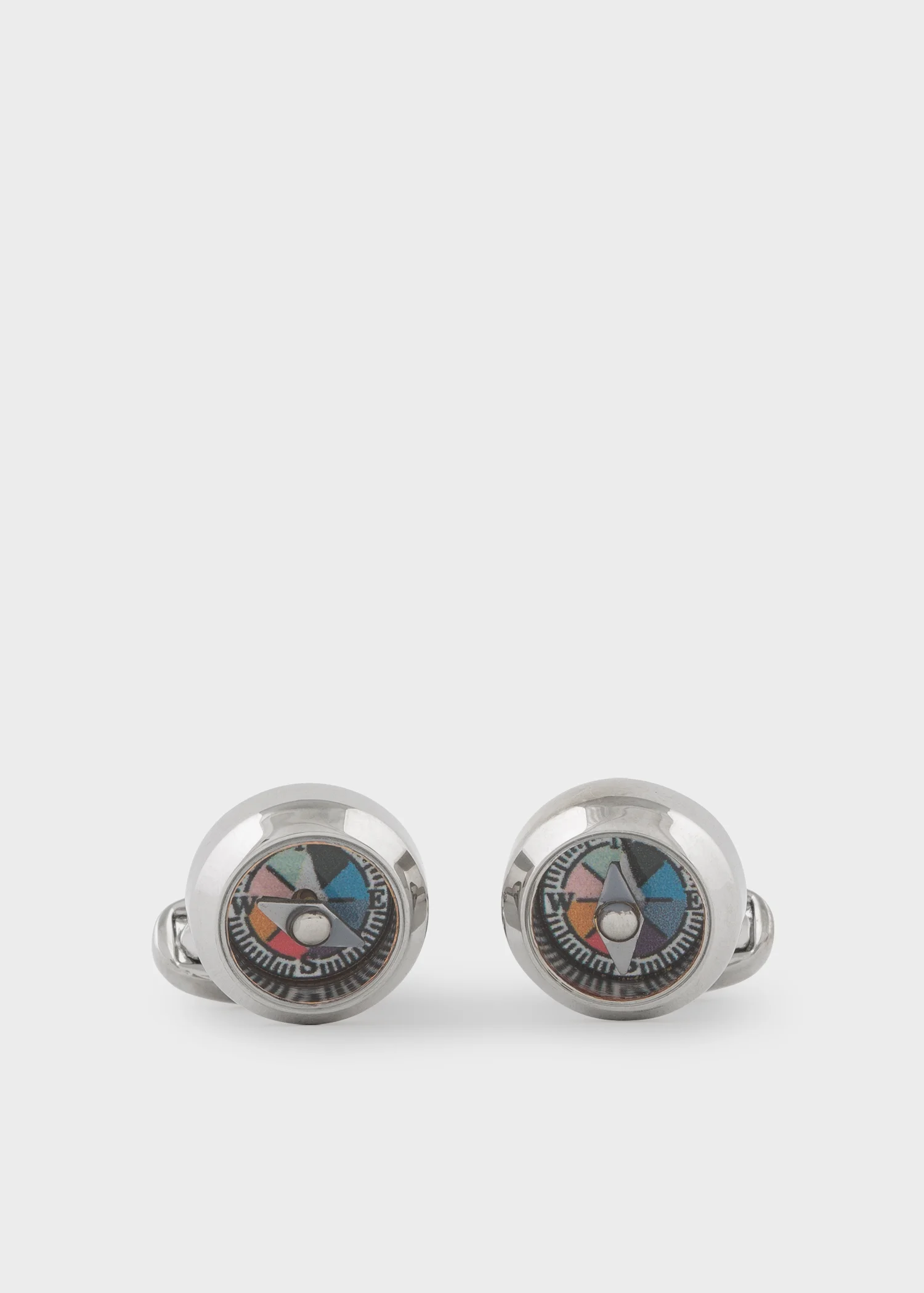 Add a splash of colour to your outfit with these 'Compass' patterned cufflinks. Complete with a polished silver finish and Paul Smith signature embossed T-bar fastenings, these cufflinks are presented in a black gift-box. 90% Copper, 10% Zinc With 100 Mother-of-pearl Plated Product Code: M1A-CUFF-HCOMP-97