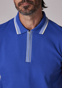 Cornflower Blue Contrast Tipping Zip-Neck Polo Shirt