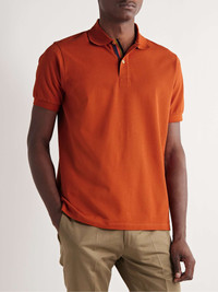 Paul Smith's 'Artist Stripe' motif has become one of the most recognisable brand signatures, appearing on everything from ready-to-wear to accessories and homeware. Trimmed with the multicoloured lines inside the placket and side slits, this polo shirt is made from breathable cotton-piqué and fastens with iridescent mother-of-pearl buttons. Size & Fit - Fits true to size, however those who are between sizes should take the smaller size - Designed for a regular fit - Mid-weight, slightly stretchy fabric - Model is shown wearing a M - Model measures: chest 38"/ 96cm, height 6'1"/ 185cm Details & Care - Orange cotton-piqué - Button fastenings - 100% cotton - Dry clean - Mother-of-pearl: Indonesia - Made in United Kingdom