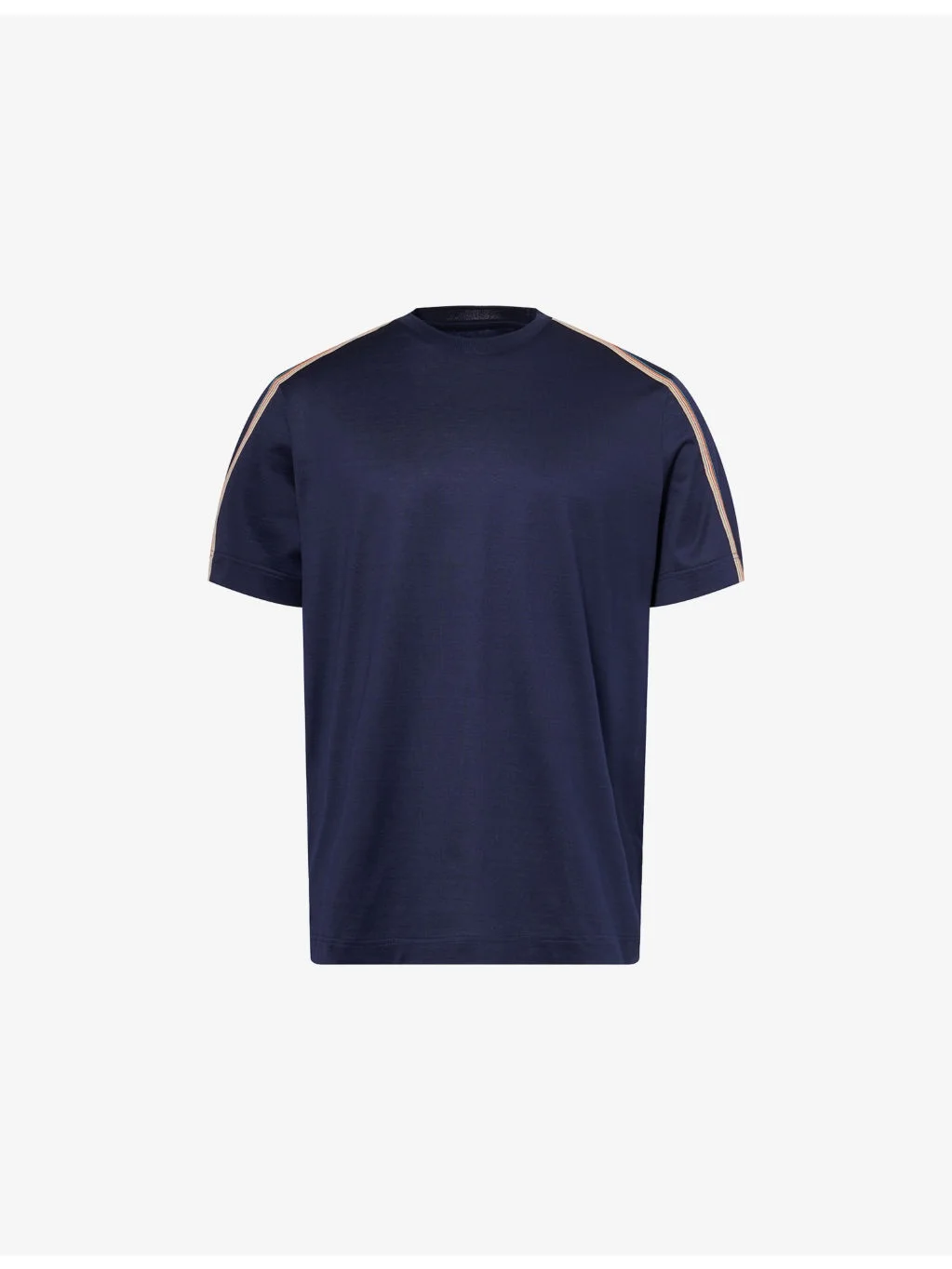 PRODUCT DETAILS - Paul Smith cotton T-shirt - 100% cotton - Regular fit, crewneck, striped panel at shoulders and sleeves, short sleeves - Machine wash at 30°C - Made in Italy - Model is 6ft 2in/1.88m and wears a size medium - Lightweight, slight stretch Ref: R04465812