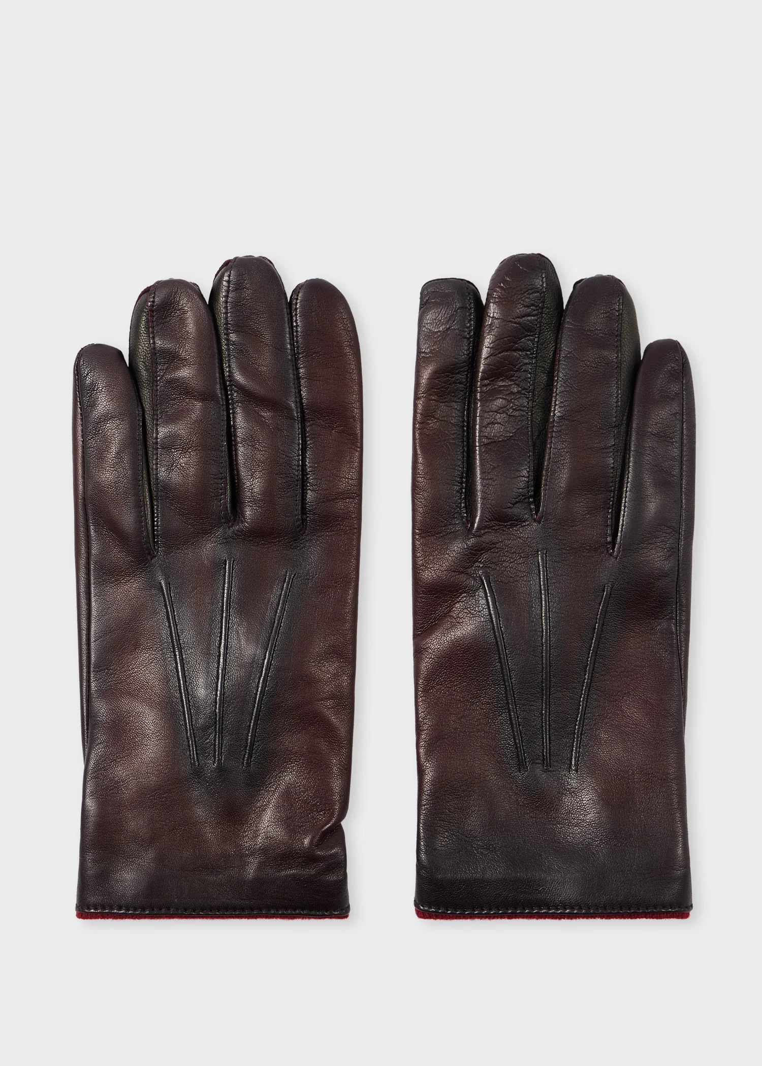 Crafted in Italy from premium leather for a soft finish, these damson gloves feature a tonal wool, cashmere and silk-blend lining for added warmth. Complete with a subtle spray pattern which uses produces a two-tone effect across the gloves. Product Code: M1A-415GL-T733-28