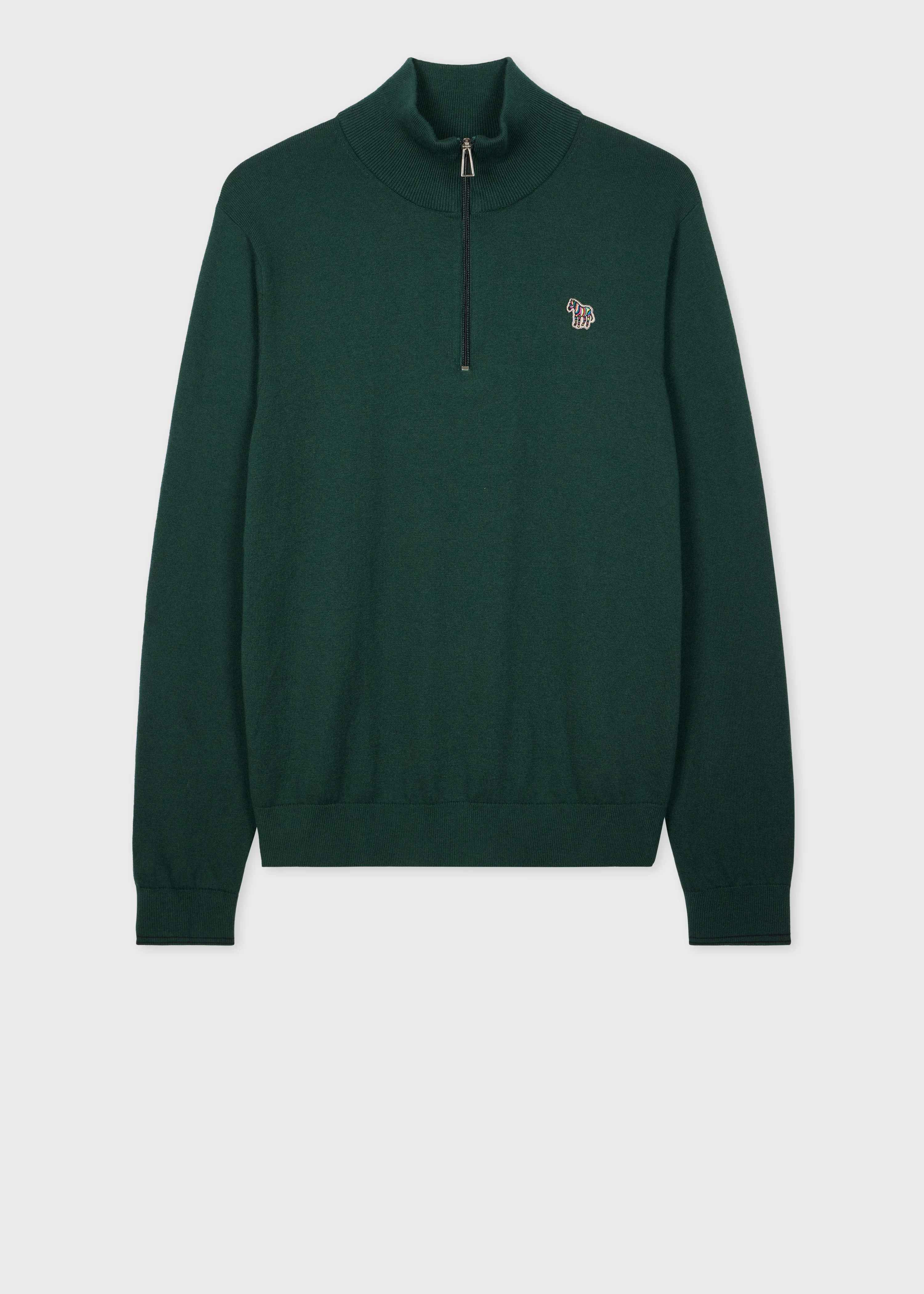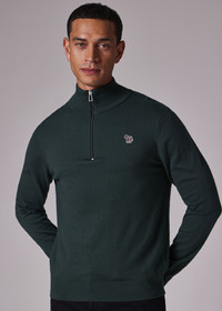 Made from a soft cotton, nylon and wool-blend, this dark green knitted sweater features a half-zip with our classic zebra logo stitched on the chest. Finished with subtle stripe tipping on the cuffs. 60% Cotton, 30% Nylon, 10% Wool Hand wash The Fit Regular-Fit is relaxed through the body. Product Code: M2R-531XZ-N22226-38