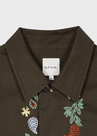 Made from 100% cotton-twill, this dark green overshirt features embroidered Paisley detailing on the front and sleeves. Complete with on-seam front pockets, pair this shirt with the matching shorts for a vibrant summer look. 100% Cotton Machine washable The Fit Regular-Fit Product Code: M1R-461ZE-P02648-35