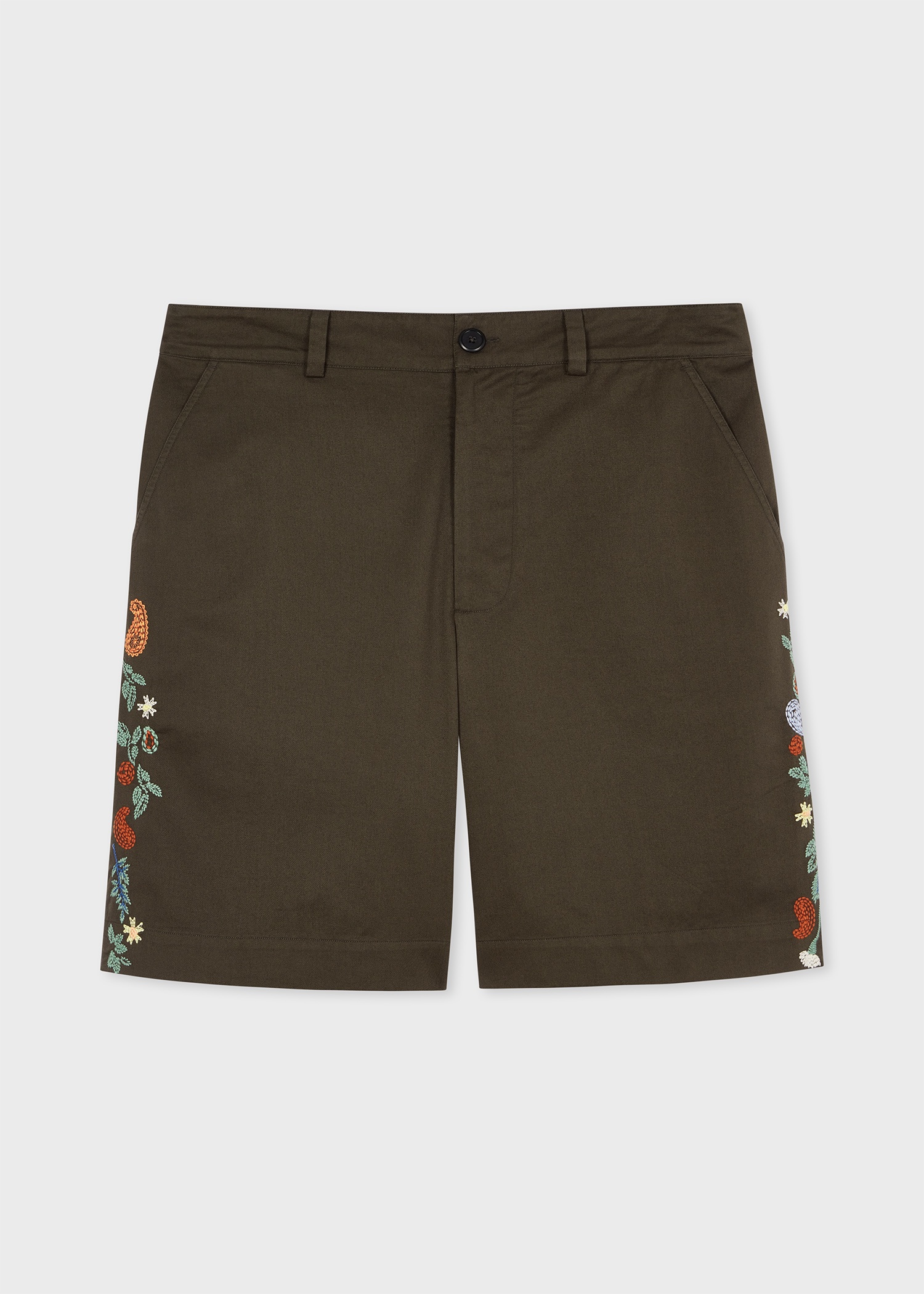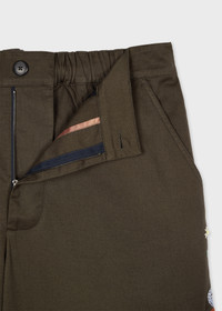 Made from 100% cotton-twill, these dark green shorts feature a seasonal embroidered Paisley pattern. Ideal for the warmer months, these shorts are finished with a hybrid semi-elasticated waistband, zip fly and rear patch pockets. 100% Cotton Machine washable The Fit Regular-Fit Product Code: M1R-437ZE-P02648-35
