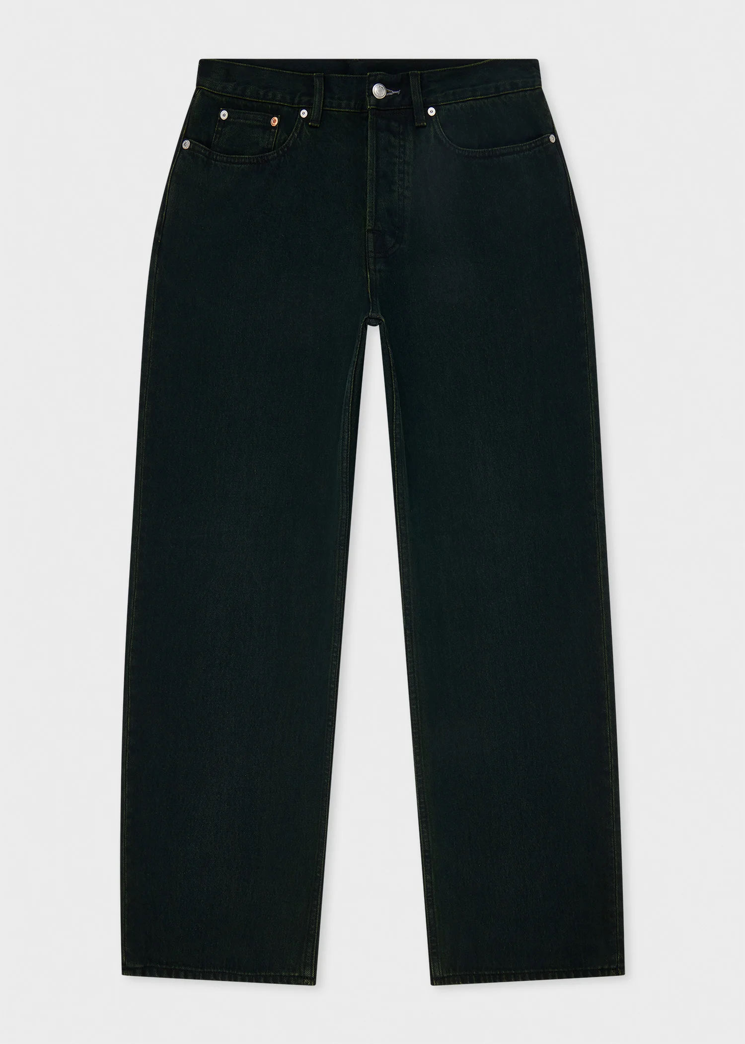 Made from 100% cotton denim with a unique dark green overdyed finish, these jeans are cut for a wider barrel leg shape. Complete with a tan suede 'Signature Stripe' waistband patch and button fly. The Fit - Wider, barrel leg shape - Mid-rise - Button fly Product Code: M1R-694Z-T21984-38