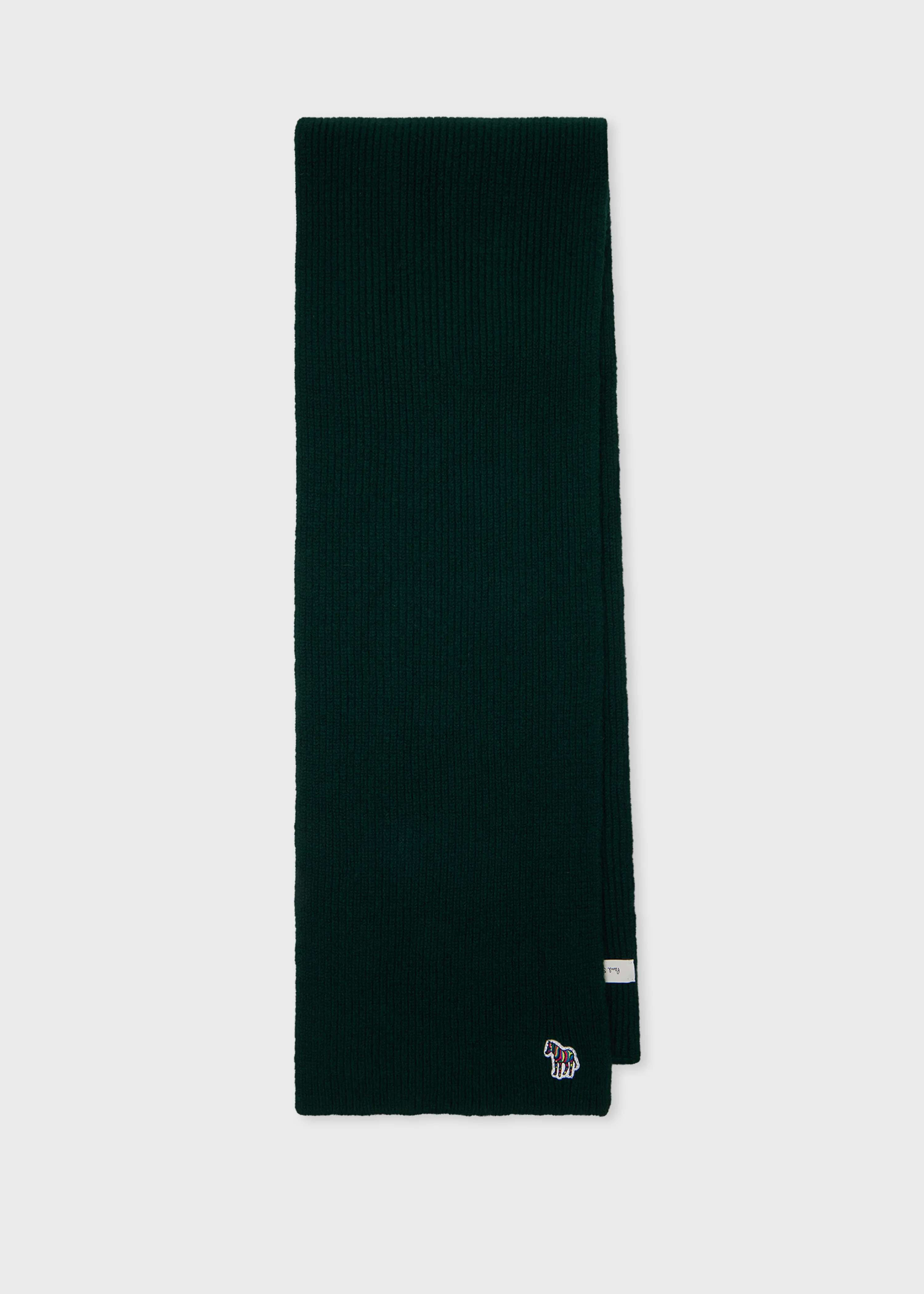 Dark Green 'Zebra' Lambswool Ribbed Knit Scarf
