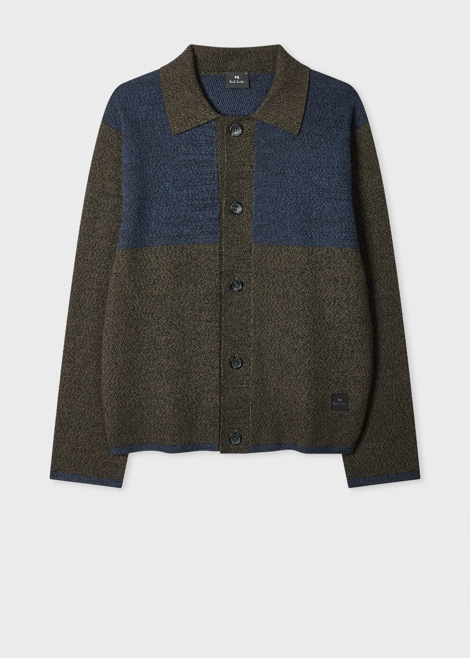 Dark Khaki and Navy Block Cotton-Wool Knit Cardigan