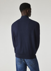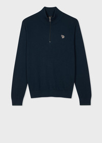 Made from a soft cotton, nylon and wool-blend, this dark navy knitted sweater features a half-zip with our zebra logo stitched on the chest. Finished with subtle stripe tipping on the cuffs. 60% Cotton, 30% Nylon, 10% Wool Hand wash The Fit Regular-Fit Product Code: M2R-531XZ-N22226-49