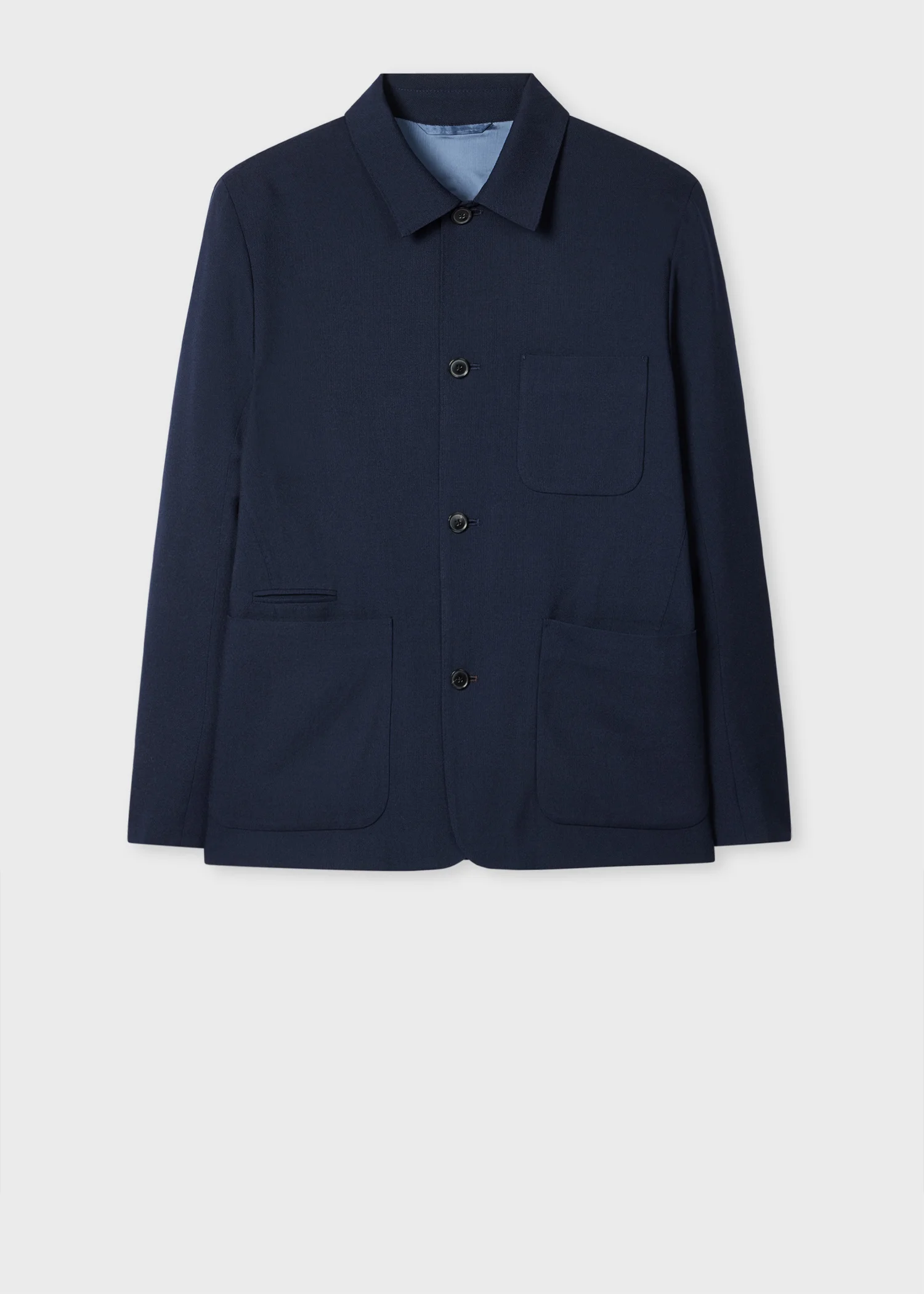 Made from an extra-fine two-ply Merino wool hopsack cloth with a tropical weave, this dark navy jacket features classic workwear-inspired styling with three bluff-stitched patch pockets. Complete with a full lining for added comfort, this versatile jacket is finished with a subtle ticket pocket detail. The Fit - Regular-Fit - Relaxed through the body - Classic workwear-inspired silhouette Product Code: M1R-017X-T01746-49