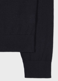 Made from a machine washable 100% Merino wool, this dark navy crew neck sweater features our 'Signature Stripe' as a subtle trim on the collar. 100% Merino Wool Machine washable The Fit Regular-Fit is relaxed through the body. Product Code: M1R-251Z-P02094-49B