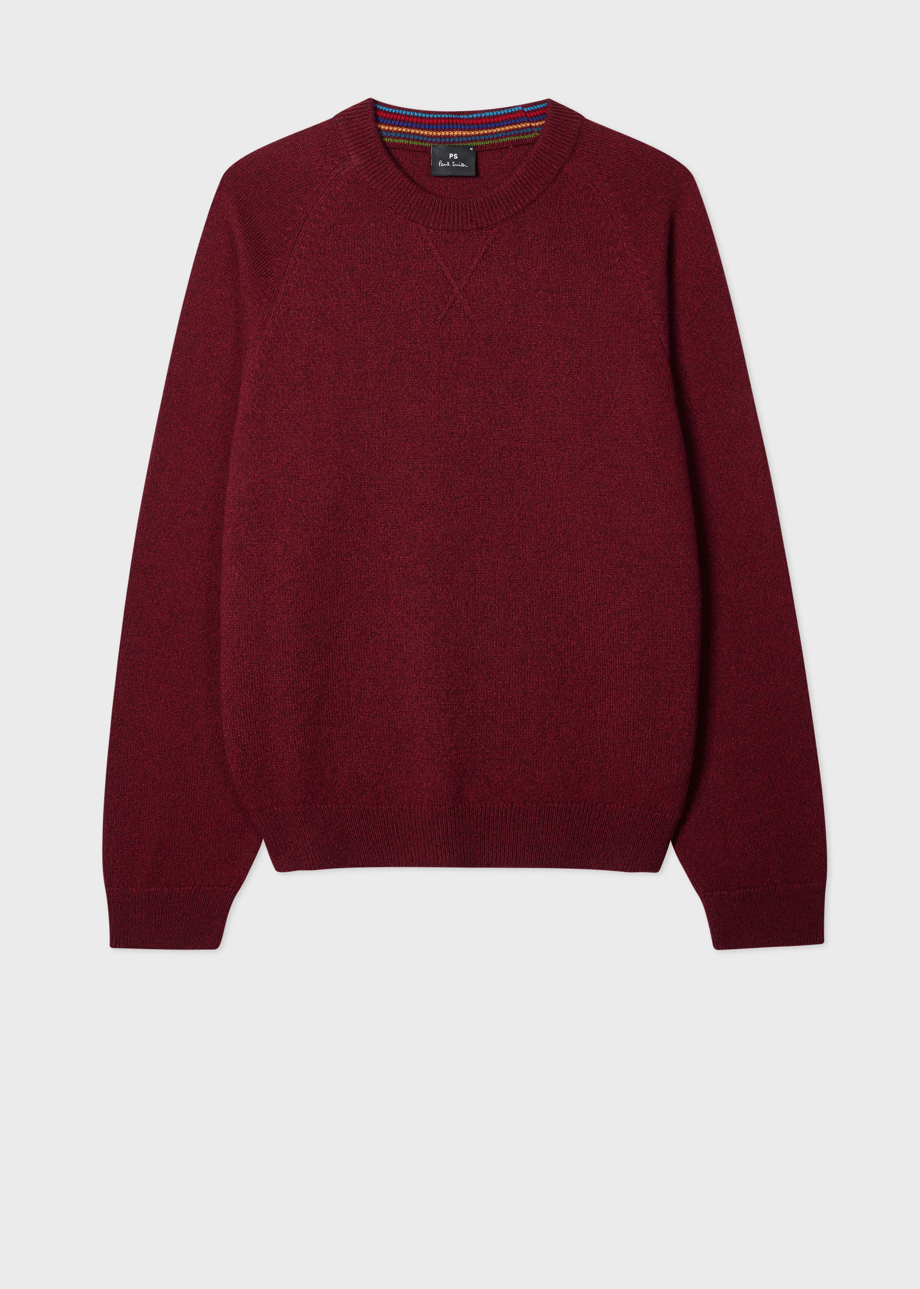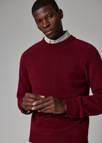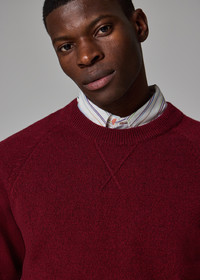 Crafted in Portugal from 100% merino wool, this dark red crew neck sweater features a raglan sleeve design. Cut for a regular-fit, this sweater is finished with a vintage sportswear-inspired 'V' stitch at the collar. The Fit - Regular-Fit Product Code: M2R-487Z-T22514-28