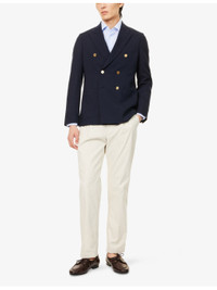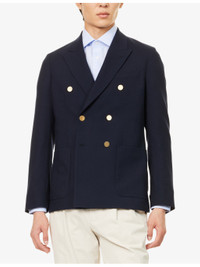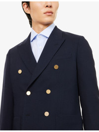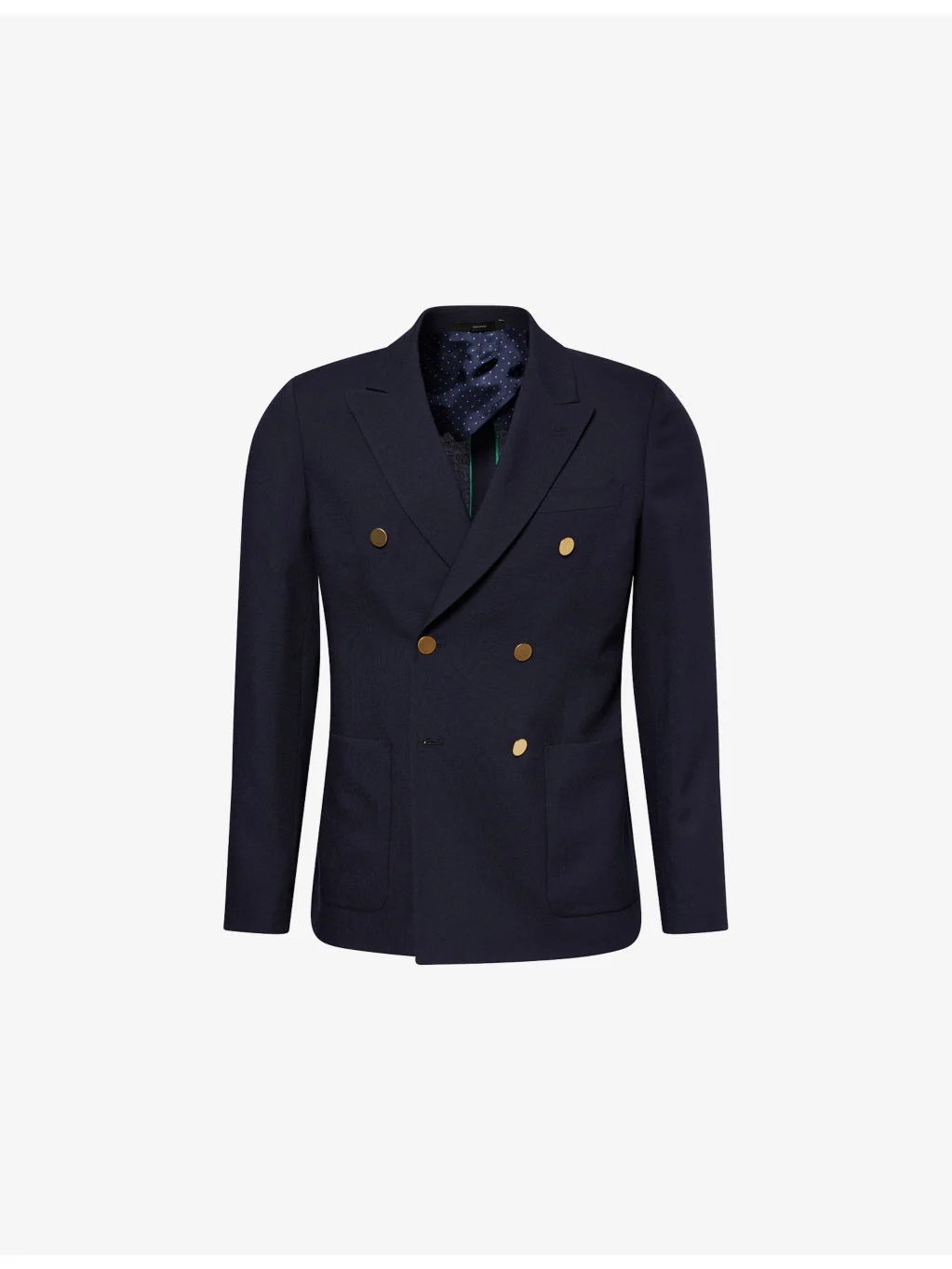 PRODUCT DETAILS - Paul Smith woven jacket - 100% viscose - Button fastening at front - Regular fit, double-breasted, notched collar, long sleeves, pocket at chest, two patch pockets at front, buttoned cuffs, single vent at back, gold-toned hardware - Dry clean only - Size UK 38: length 30.7in / 78cm, chest 40.1in / 102cm - Model is 6ft 2in/1.88m and wears a size UK 38 - Midweight, non-stretch Ref: R04465831