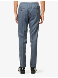 PRODUCT DETAILS - Paul Smith wool trousers - 100% wool - 'A Suit To Travel In' collection, regular fit, elasticated drawstring waistband, two side slip pockets, tapered leg, pressed creases, one rear welt pocket - Dry clean only - Made in Portugal - Model is 6ft 2in/1.88m and wears a size medium - Lightweight, non-stretch Ref: R04536665