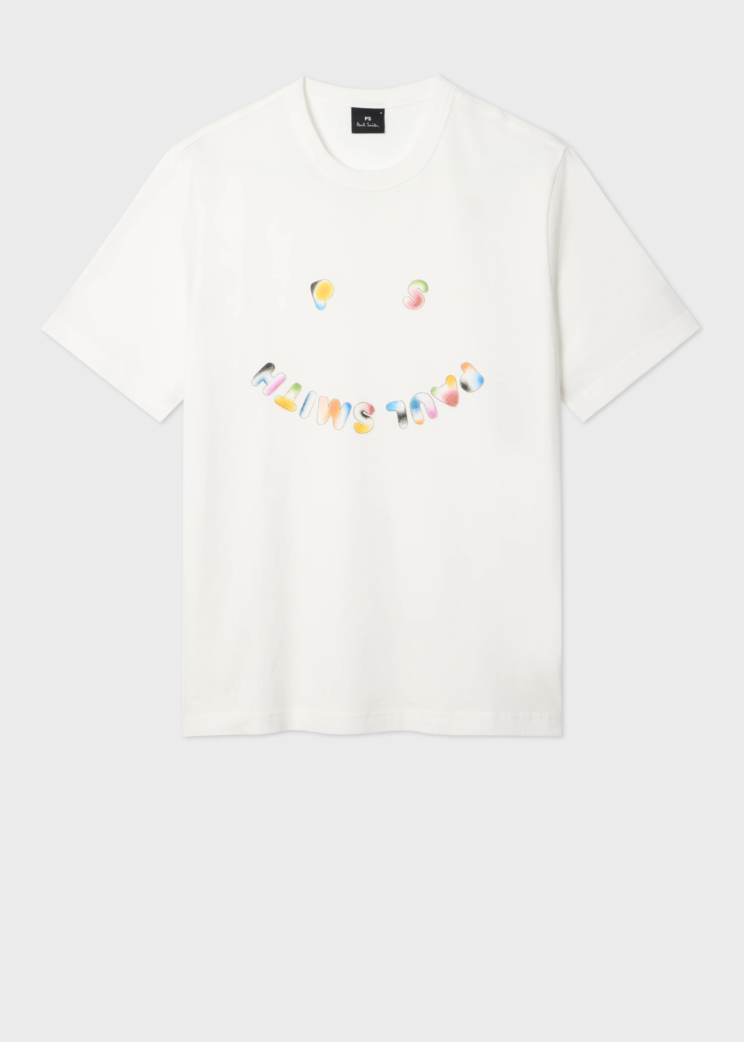 Made from organically grown cotton for a soft finish, this ecru crew neck t-shirt features a multicolour 'PS' Happy motif. Cut for a casual fit, this t-shirt is finished with a stitched-on ribbed collar and tonal stitching. The Fit - Casual-Fit, is relaxed through chest and wider towards the hem. Product Code: M2R-220X-VP5589-02