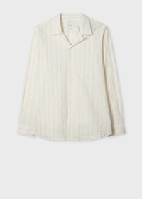 Made in Italy from a breathable cotton and linen-blend, this summer-ready ecru shirt features a textured stripe pattern throughout. Ideal for the warm weather, this shirt comes complete with a relaxed open collar with loop button closure. 84% Cotton, 16% Linen Hand wash Made in Italy The Fit Classic-Fit is relaxed through the chest and wider towards the hem. Product Code: M1R-387Z-T02713-02