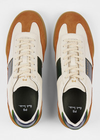 Made in Portugal from a leather composition with contrast suede khaki and tan paneling for a refined touch. The 'Dover' trainers have rubber soles, tonal insole, and are complete with 'PS' branding for a distinctive branded touch. 100% Leather Uppers 100% Rubber Soles Made in Portugal Product Code: M2S-DVR80-TLEA-02