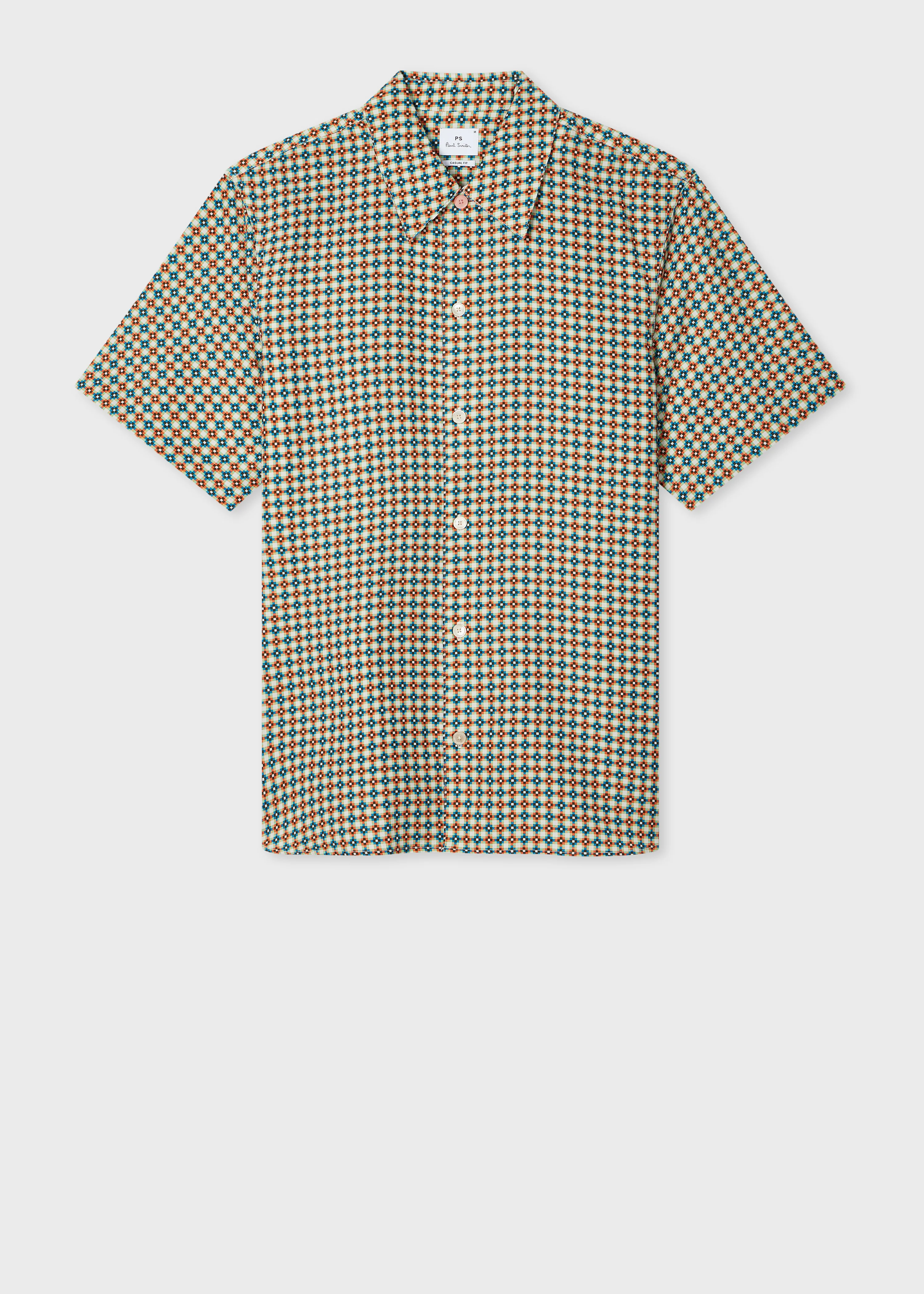Made from a lyocell and cotton-blend cloth for a lightweight finish, this short-sleeve shirt features a summer-ready 'Geo Tile' print. Cut in our casual-fit for everyday comfort, this shirt is finished with a soft point collar and contrast top button detail - for an added twist. The Fit - Casual-Fit Product Code: M2R-896Z-V22660-02