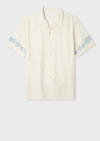 Ecru Lyocell-Cotton Floral Trim Short-Sleeve Shirt