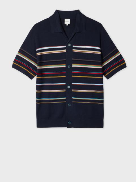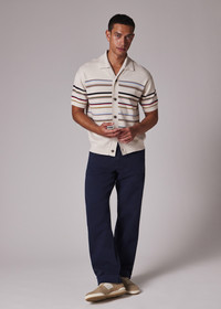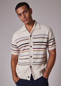 Ecru 'Signature Stripe' Knitted Cotton Short-Sleeve Shirt