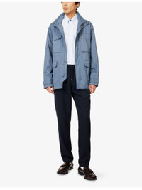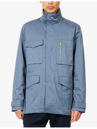 PRODUCT DETAILS - Paul Smith woven jacket - 63% polyamide, 37% polyester - Concealed snap and zip fastenings at front - Regular fit, funnel neck, long sleeves, adjustable tab at cuffs, patch pockets at chest, flap pockets at front, adjustable waist, signature tab at nape, interior zip pocket - Machine wash at 30°C - Size medium: length 31in / 79cm, chest 48in / 122cm - Model is 6ft 2in/1.88m and wears a size medium - Midweight, non-stretch Ref: R04465802