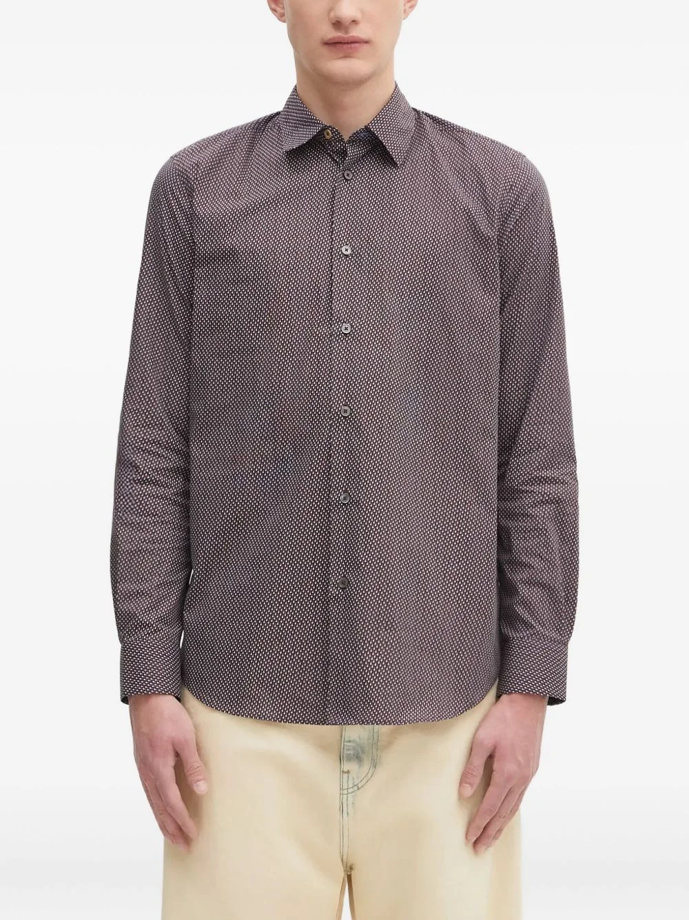geometric-print shirt Highlights - Dark brown - Geometric print - Pointed collar - Long sleeves - Button fastening - Curved hem Imported Composition Cotton 100% Washing instructions Read Manufacturer Guidelines