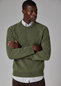 Crafted in Portugal from 100% merino wool, this green crew neck sweater features a raglan sleeve design. Cut for a regular-fit, this sweater is finished with a vintage sportswear-inspired 'V' stitch at the collar. The Fit - Regular-Fit Product Code: M2R-487Z-T22514-39