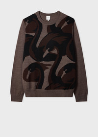Made from a merino wool and silk-blend, this brown crew neck sweater features a repeating 'Swan' pattern on the front. Cut for a regular-fit, this sweater is finished with a ribbed collar, cuffs and waistband. The Fit - Regular-Fit Product Code: M1R-749Z-V02971-67