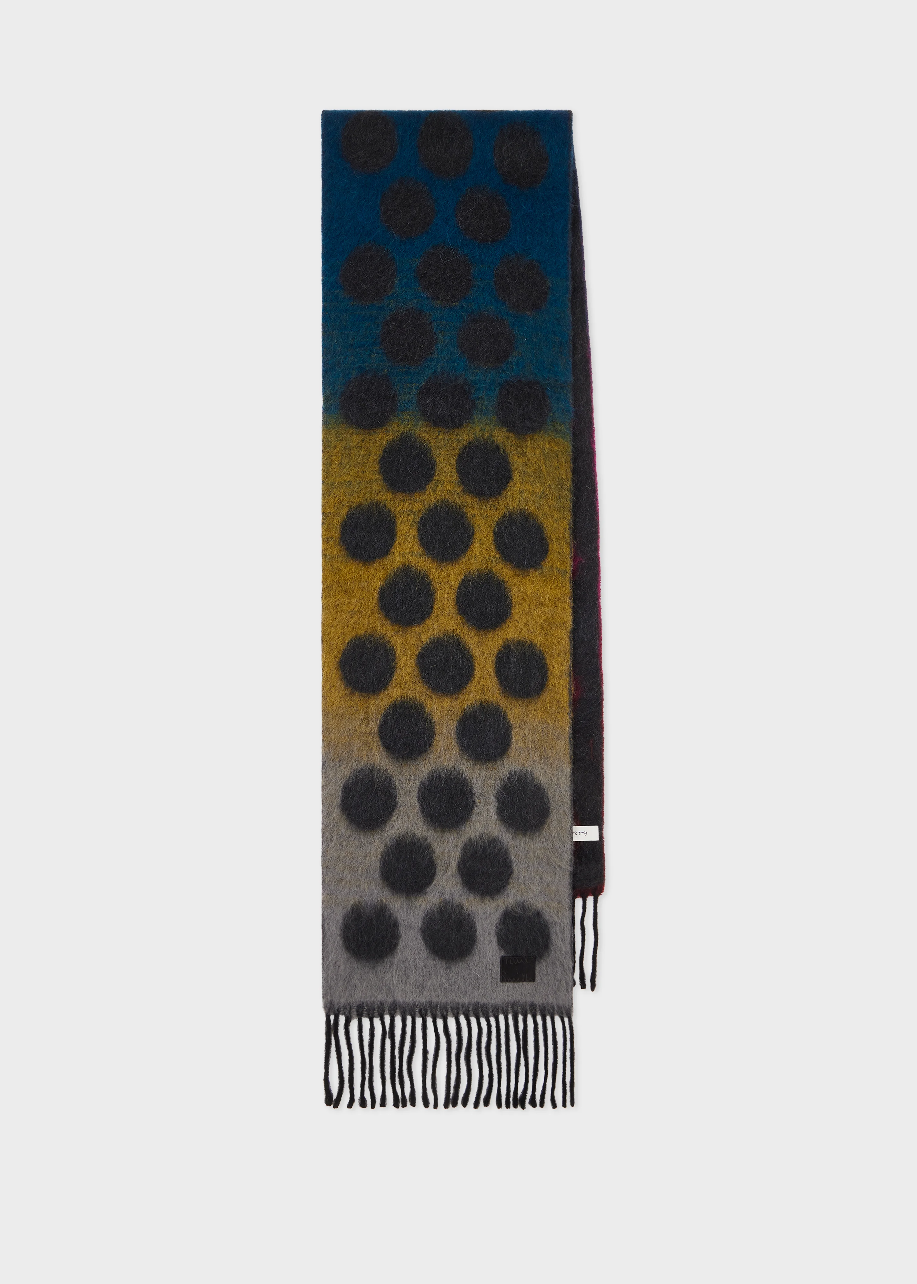 Made in Italy from soft merino-wool blend, this scarf features a tonal block colour design overlayed with a polka dot pattern. Ideal for the transitional weather, this scarf pairs well with neutral looks. Product Code: M1A-150C-T709-76
