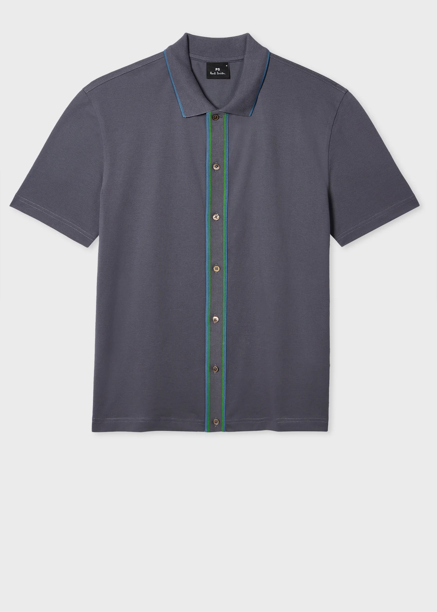 Made from soft organic cotton pique with stretch for added comfort, this grey polo shirt features a full button placket. Finished with blue tipping on the placket and collar. The Fit - Regular-Fit is relaxed through the body. Product Code: M2R-787Y-T21511-75