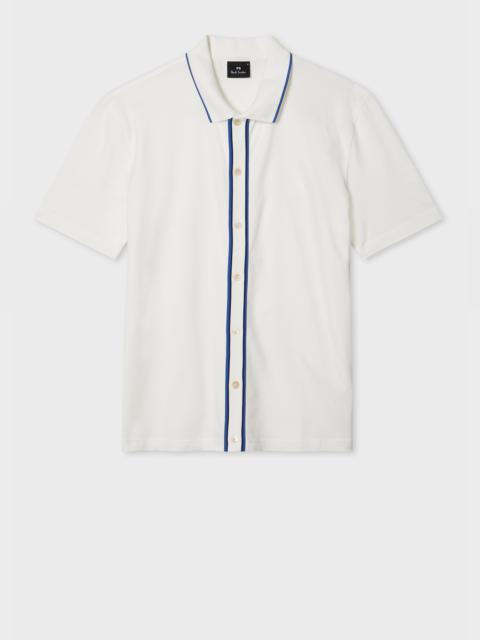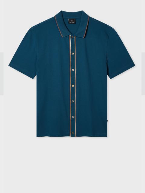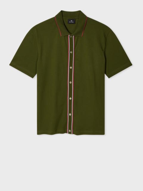 Grey Button-Front Stretch-Cotton Polo Shirt