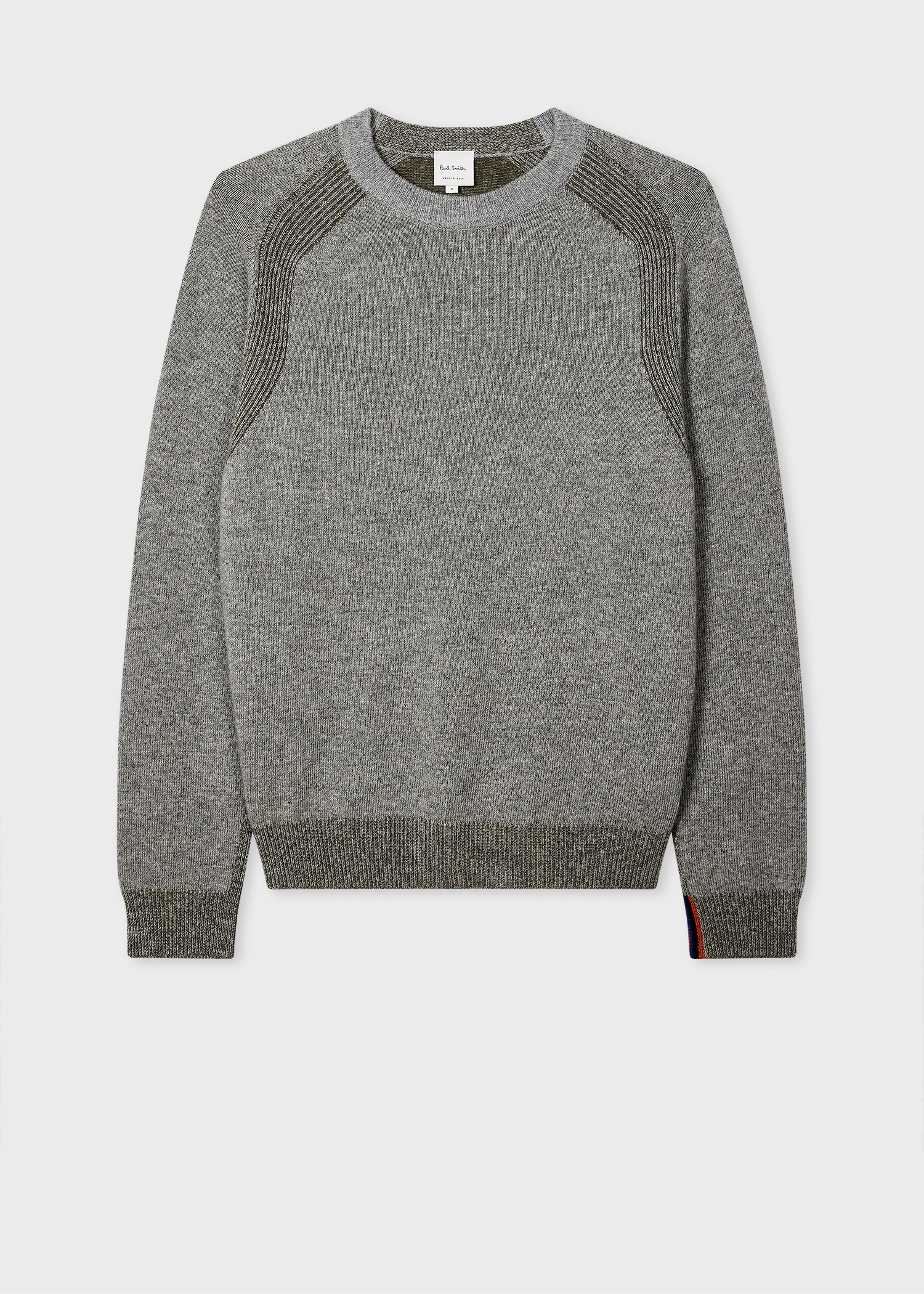 Made in Italy from 100% Lambswool for a soft and warm finish, this grey crew neck sweater features a timeless design. Complete with ribbed detailing at the shoulders and down the side seams, this sweater is finished with a single 'Artist Stripe' detail on the left cuff. 100% Lambswool Hand wash Made in Italy The Fit Regular-Fit is relaxed through the body. Product Code: M1R-246Z-P02585-72