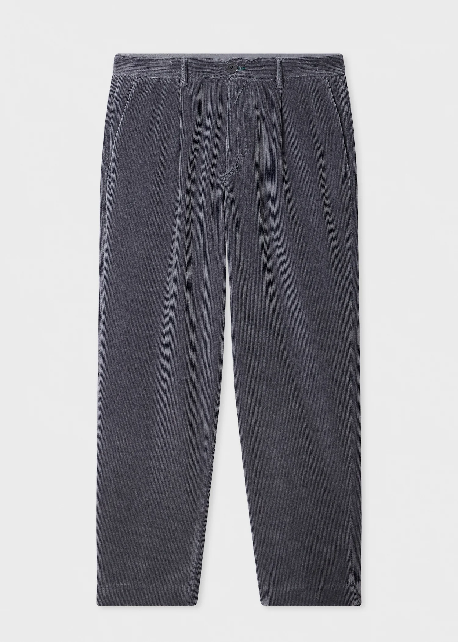 Made from 100% organic cotton corduroy for a soft and tactile finish, these grey trousers feature a tapered silhouette with pleated detailing. Pair with the matching jacket for a contemporary coordinated look. The Fit - Tapered-Fit Product Code: M2R-360Y-T22374-75