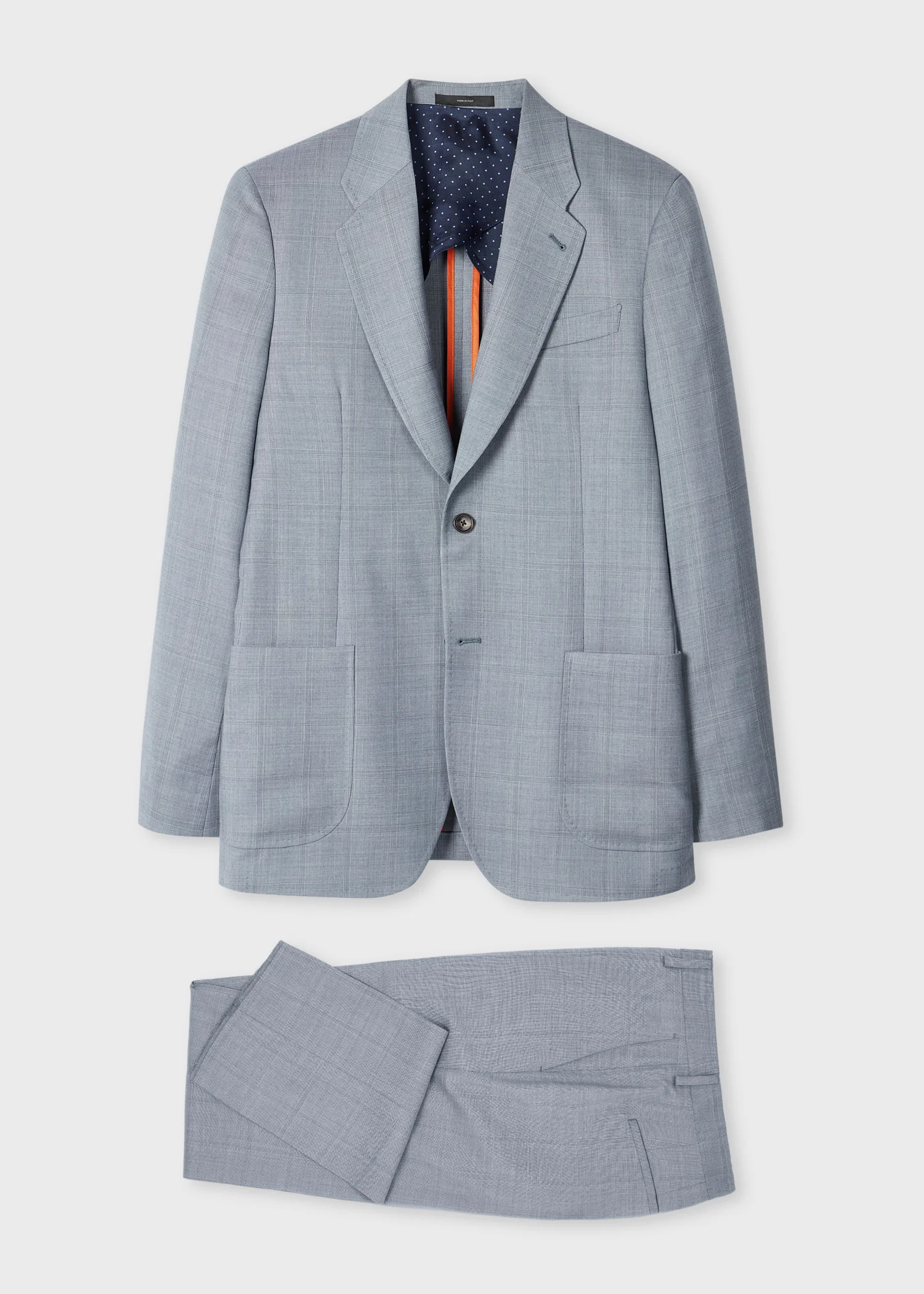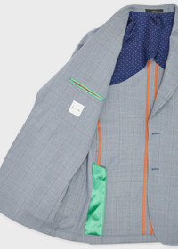 Made in Italy from Zelander superfine merino wool from Loro Piana, this grey suit features a fine check pattern. The blazer features a buggy lining for comfort and breathability. Cut for a relaxed tailored-fit with a soft shoulder, this blazer is finished with patch pockets and AMF stitching. The trousers are a tapered fit silhouette with partial lining. Product Code: M1R-SUIT-T02708-70